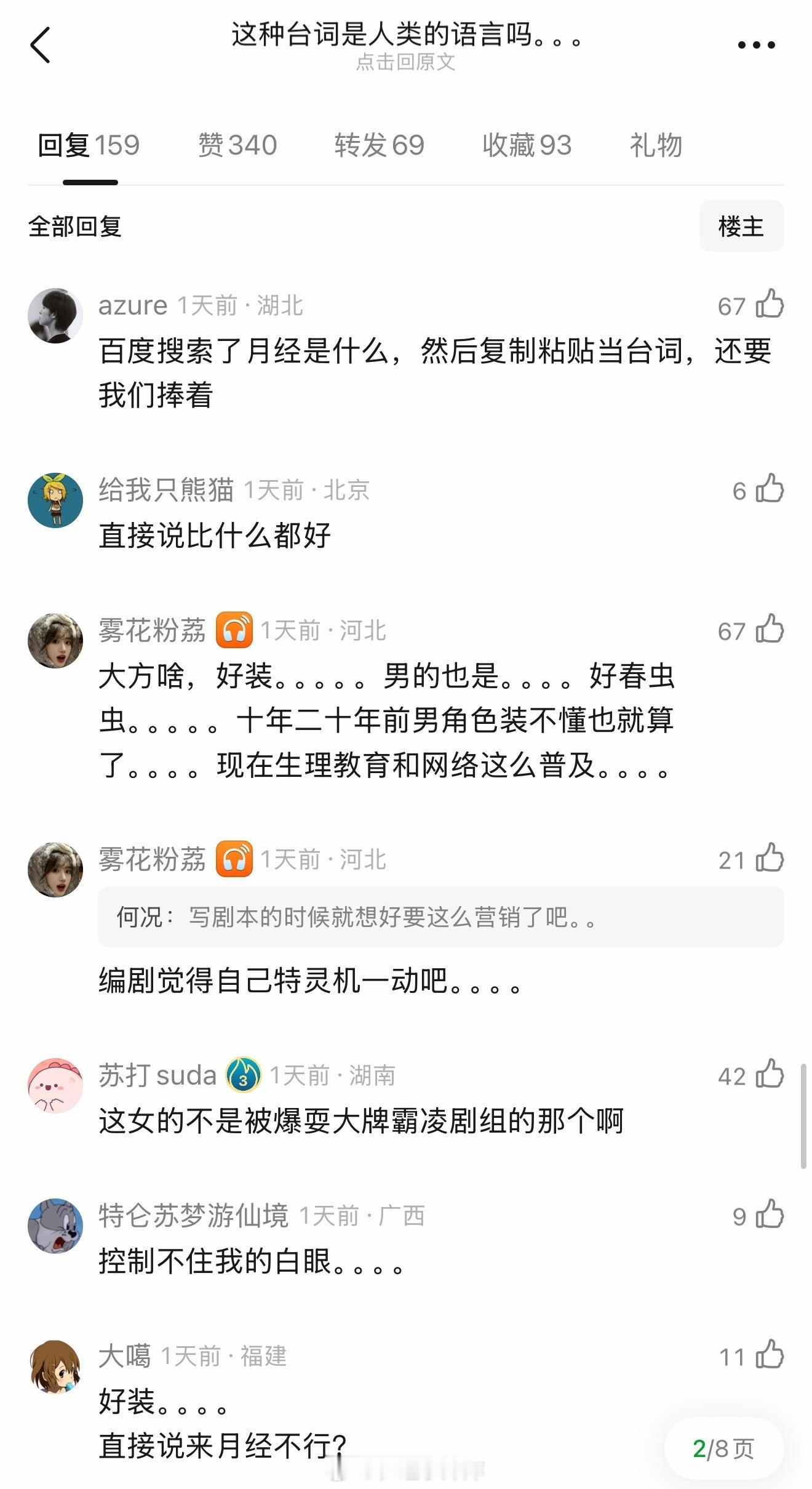 即刻上场 这台词还值得买水稿啊想吃爱女红利,认真写段台词都不肯吗这段月经科普是出