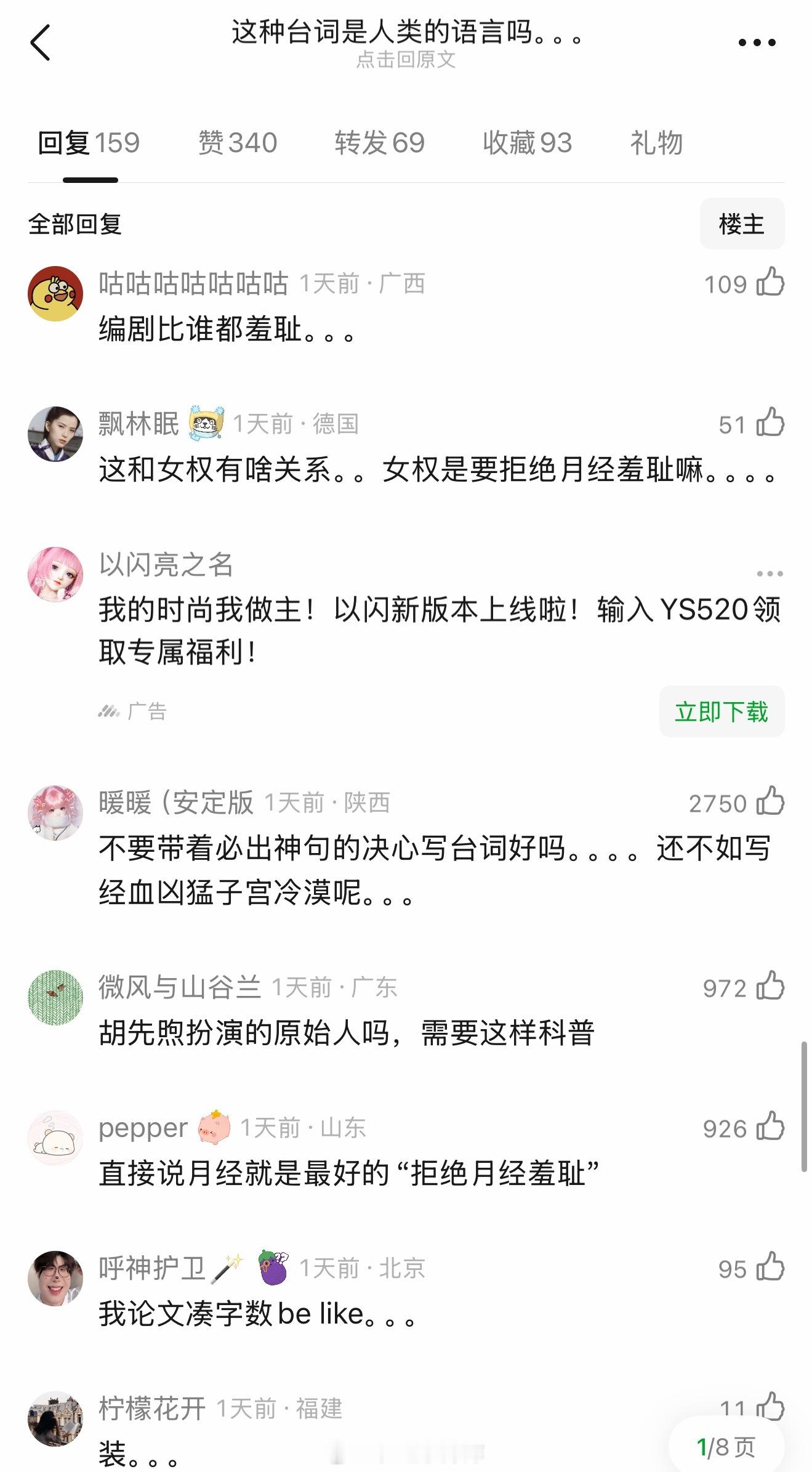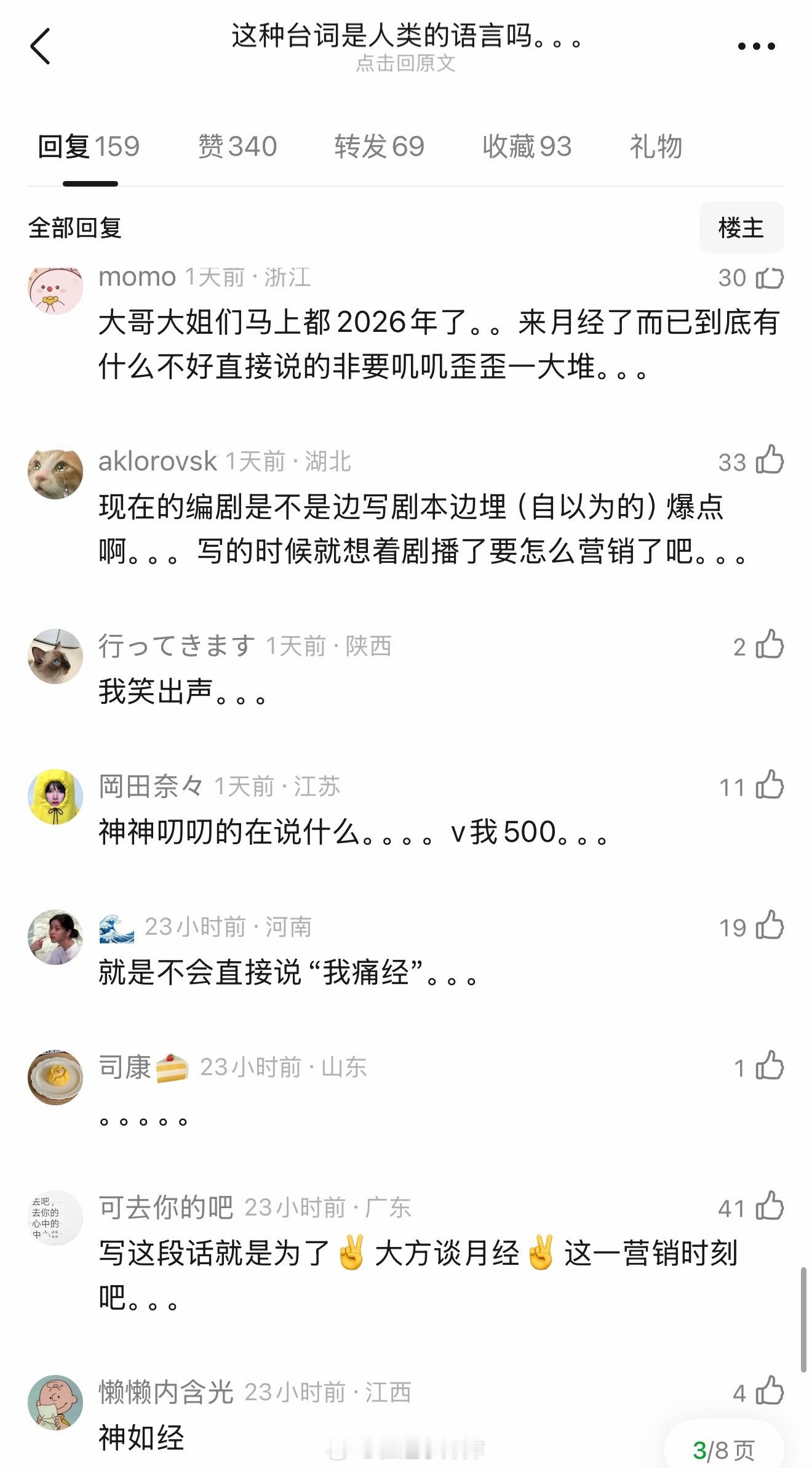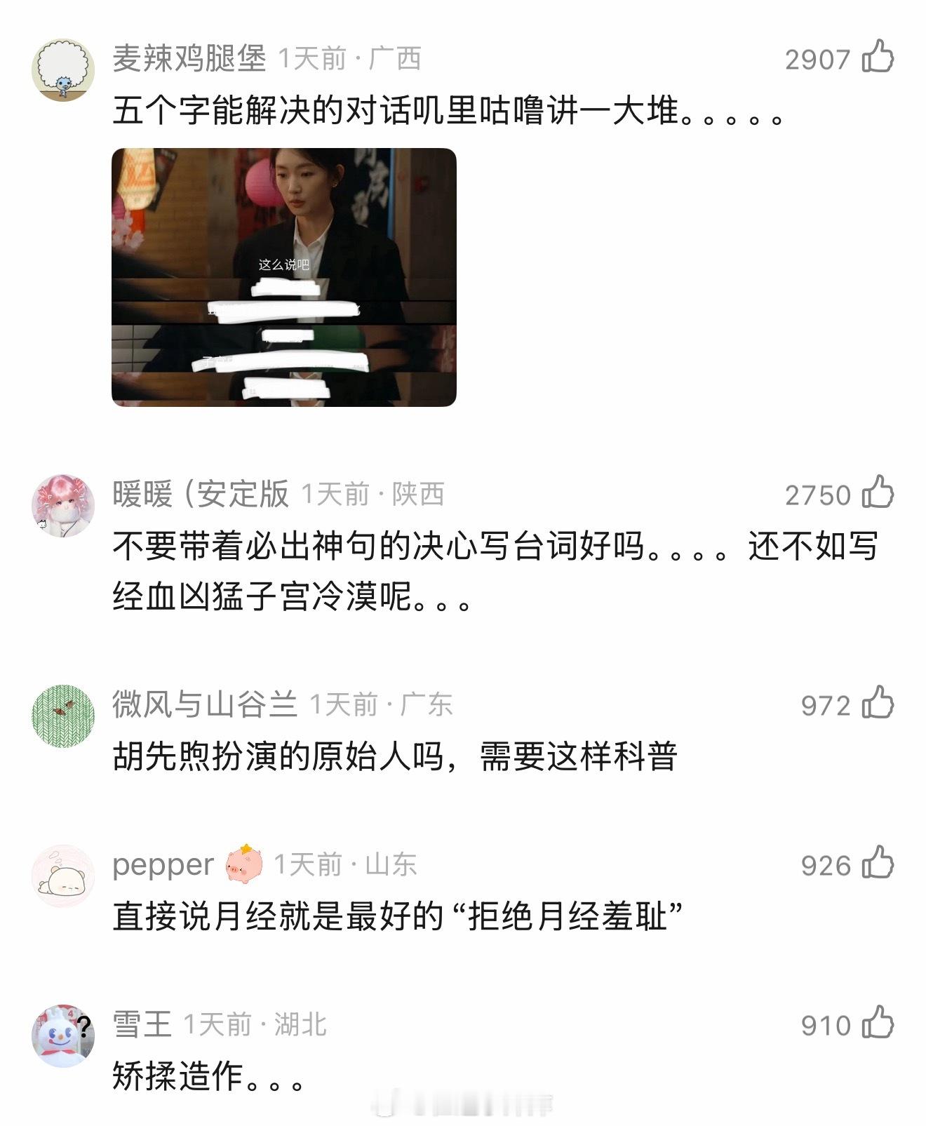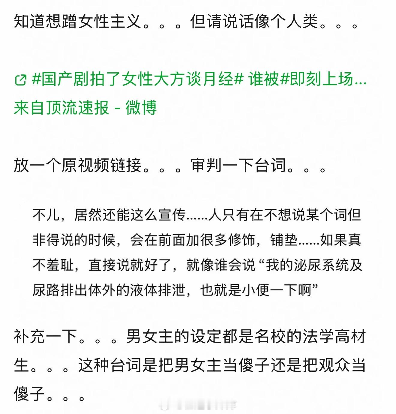 即刻上场 这台词还值得买水稿啊想吃爱女红利,认真写段台词都不肯吗这段月经科普是出自百度还是ai啊