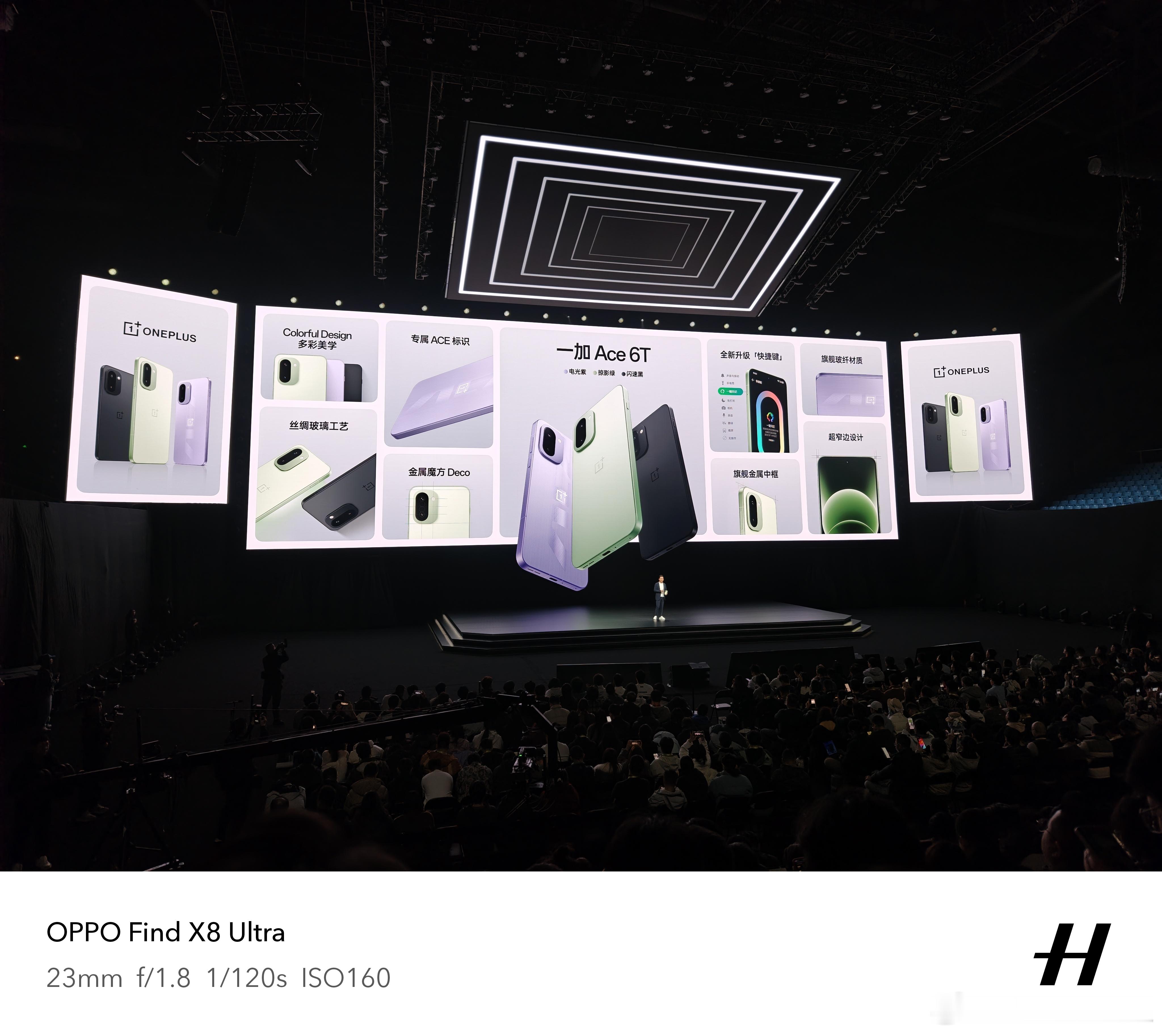一加Ace6T 带来「掠影绿」、「电光紫」、「闪速黑」三款配色,延续简洁的设计风格,以Colorful Design多彩美学设计呈现全面旗舰质感。一加Ace 6T整机背板干净清爽,金属魔方Deco精致好看,搭配圆润的“黄金R角”与高强度微弧金属中框,尽显秩序美学的同时,实现舒适的握持体验与轻盈坚固的质感。正面采用超窄边设计,视野超沉浸,⼤屏更尽兴;更有全新升级快捷键,新增九大功能,自由定义,方便好用。一加Ace6T新品发布