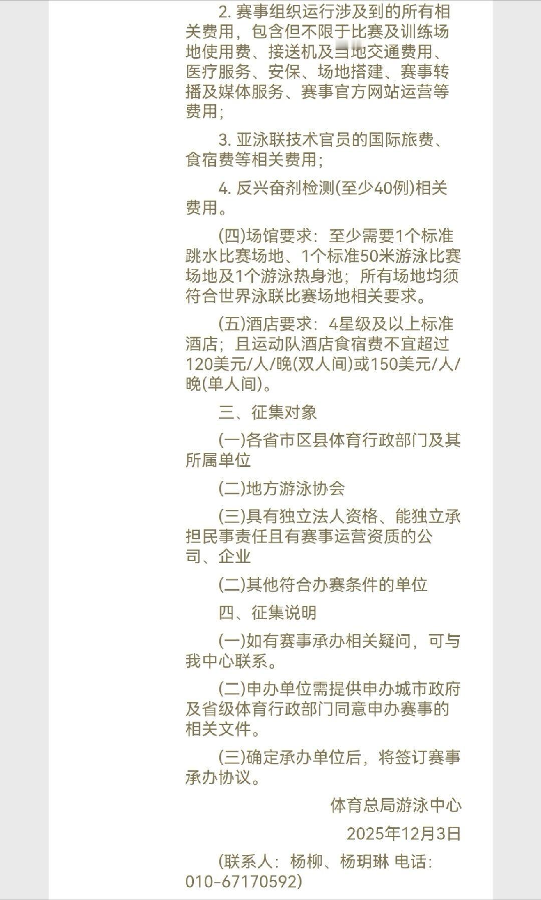 SWim进行时 『8644』第12届亚洲游泳锦标赛承办征集「为进一步推动游泳中心各项目发展,统筹做好洛杉矶奥运会备战工作,经与亚洲游泳联合会(Asia Aquatics,以下简称亚泳联)确认,拟于2027年在华举办第12届亚洲游泳锦标赛。经中心研究,现公开征集赛事承办单位。」cr中国游泳协会