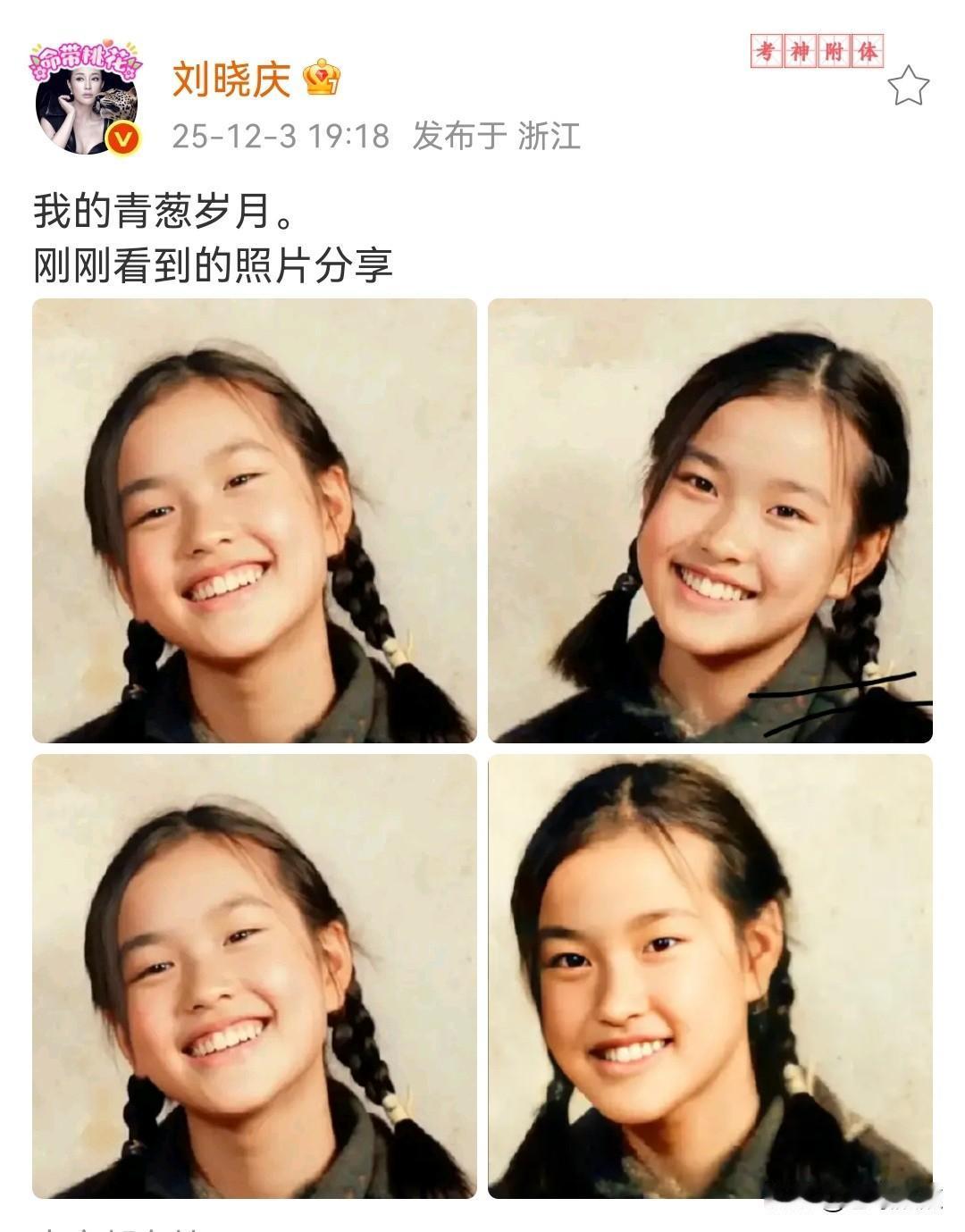 刘晓庆分享了她少女时代的照片。她少女时代和青年时代还是很相像的,脸型、五官变化不