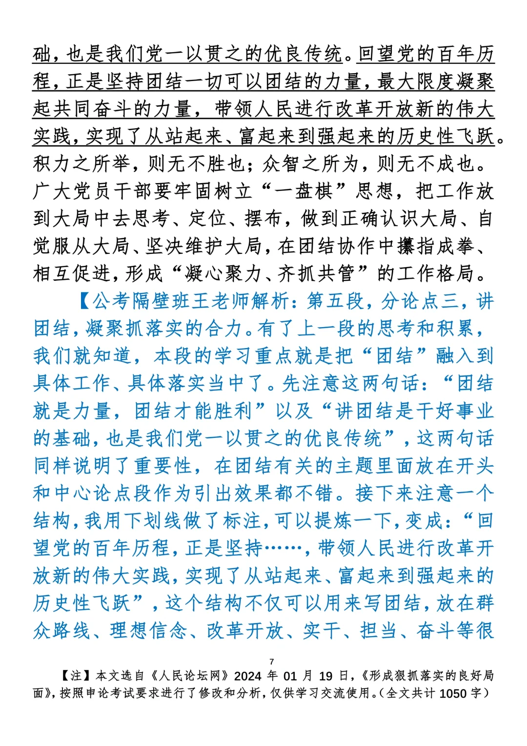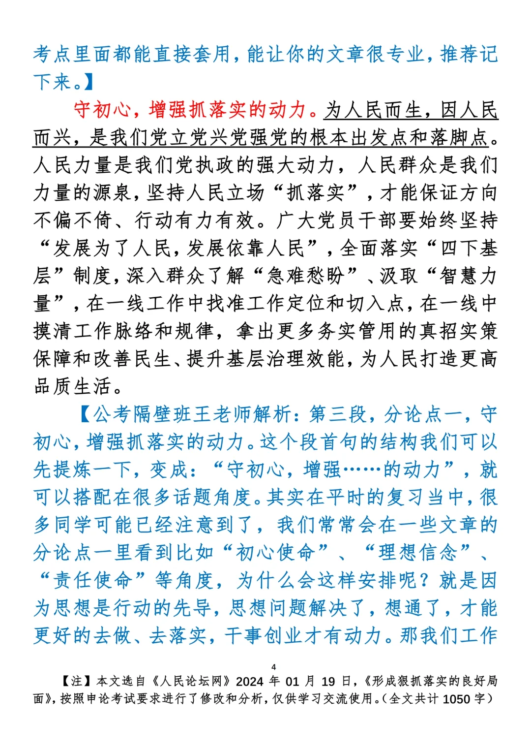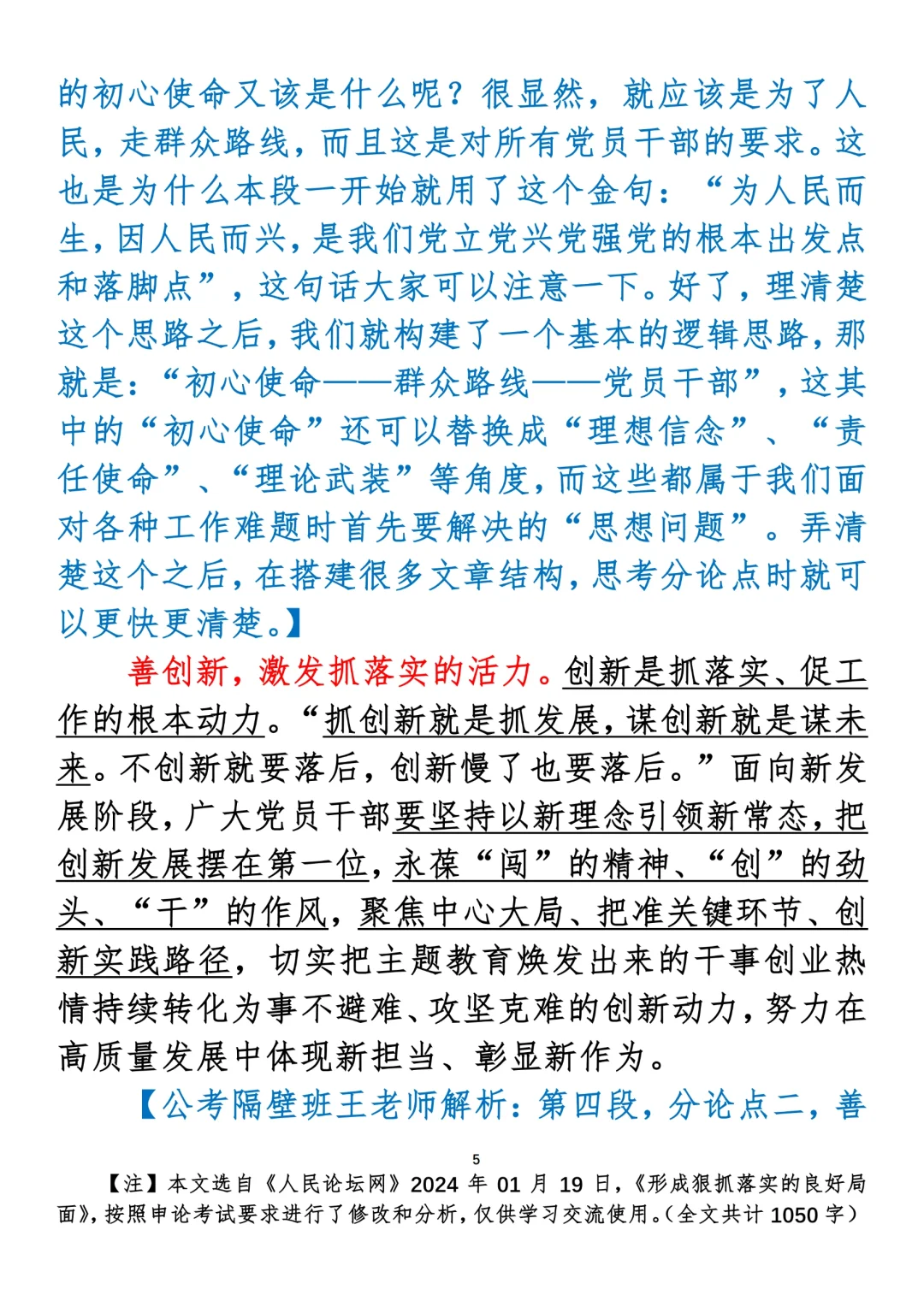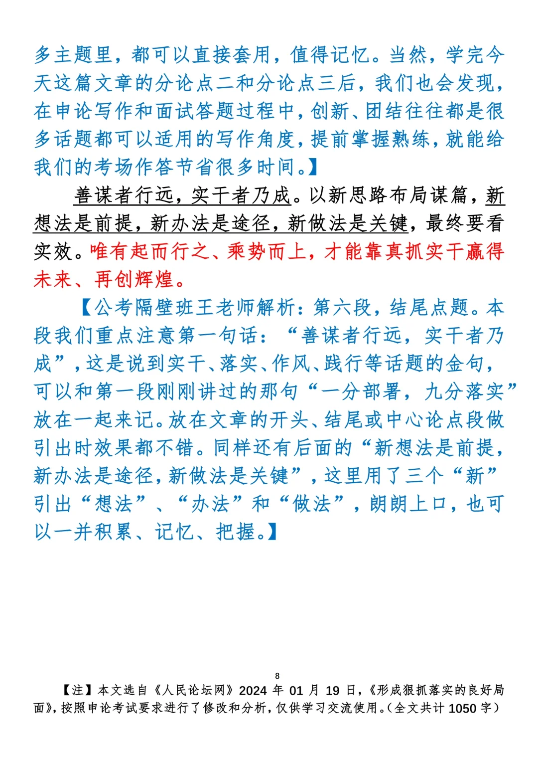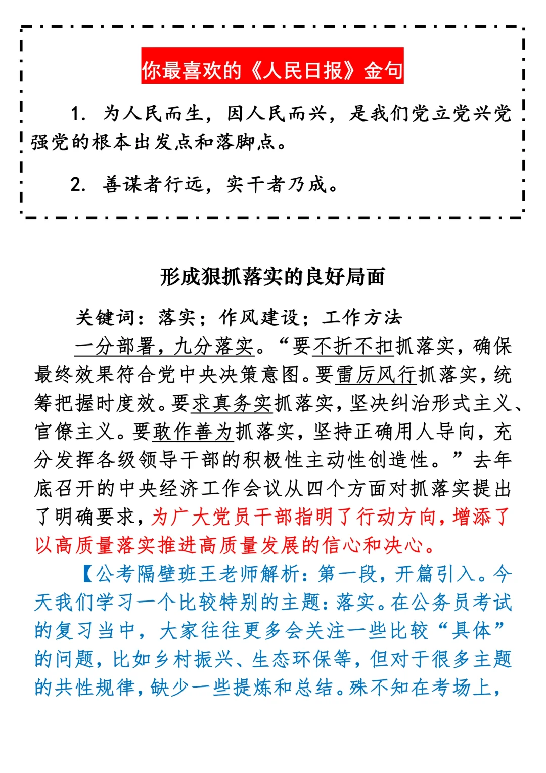 如何抄写:每日抄写文章发在“公考隔壁班王老师”账号,红色字是重点句和结构句,黑色字是正文,蓝色字是解析,大家抄写时不必抄蓝色字。建议先通读全文,做到心中有数再开始抄写,效果会更好。 关于文章:抄写文章来源于人民日报,但每篇文章我都根据申论考试要求进行了修改:一是重写或修改开头、结尾;二是统一段首句句式结构;三是调整段落字数,使文章结构更均衡;四是简化复杂长难句,使之更具可模仿性。每篇文章无论修改多少,都是基于申论考试要求,毫无对人民日报文章品评之意。(此处致敬人民日报)