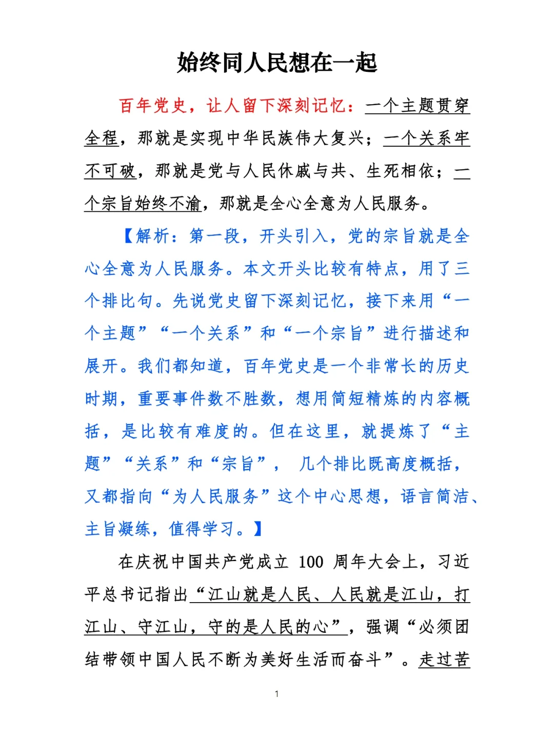 申论范文:始终同人民想在一起(文字版)