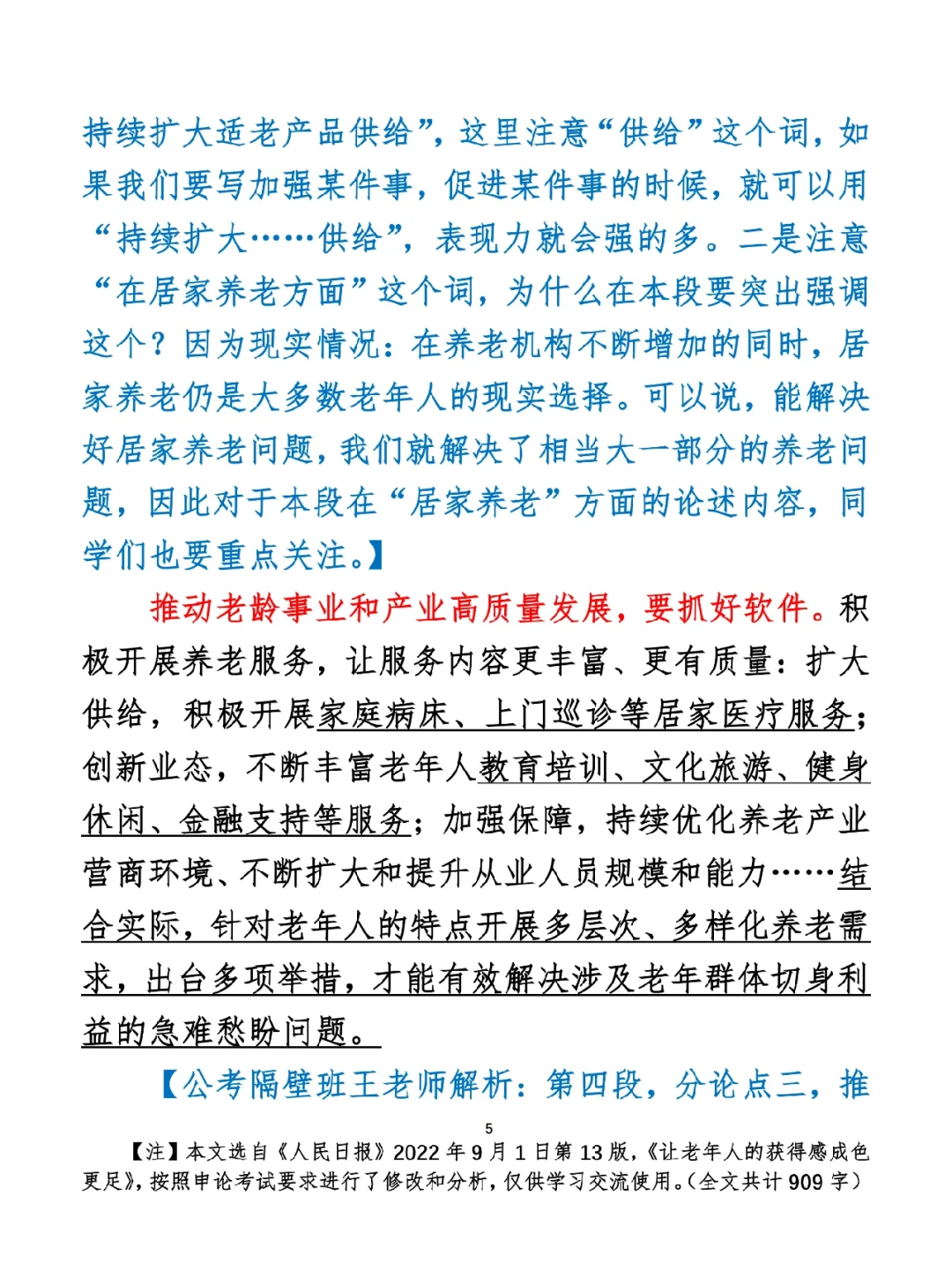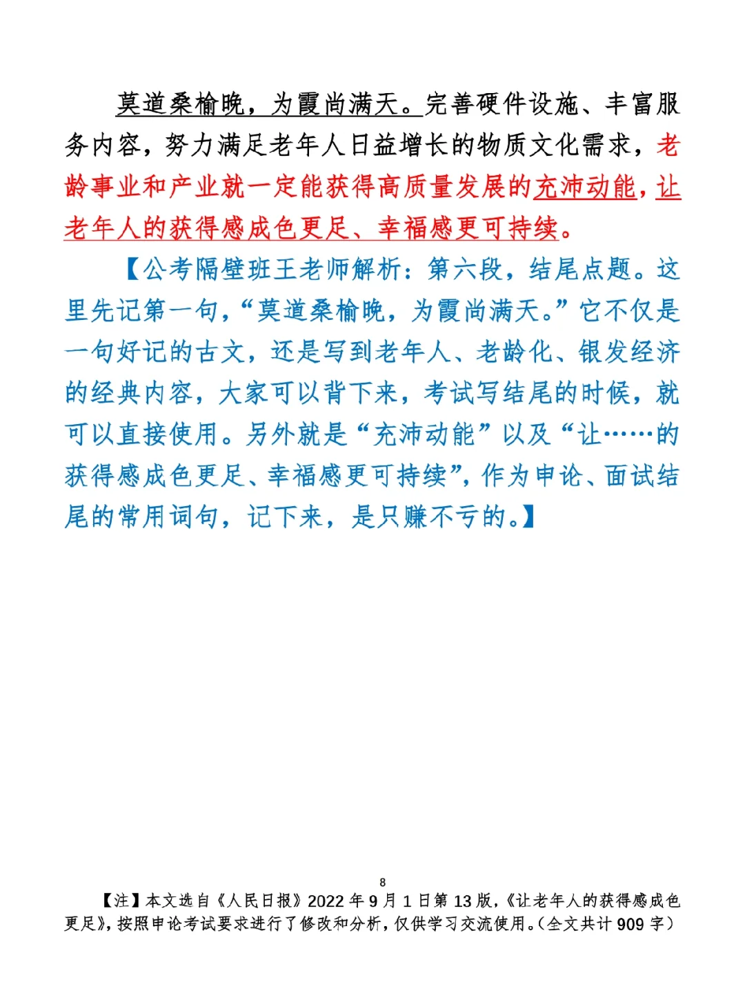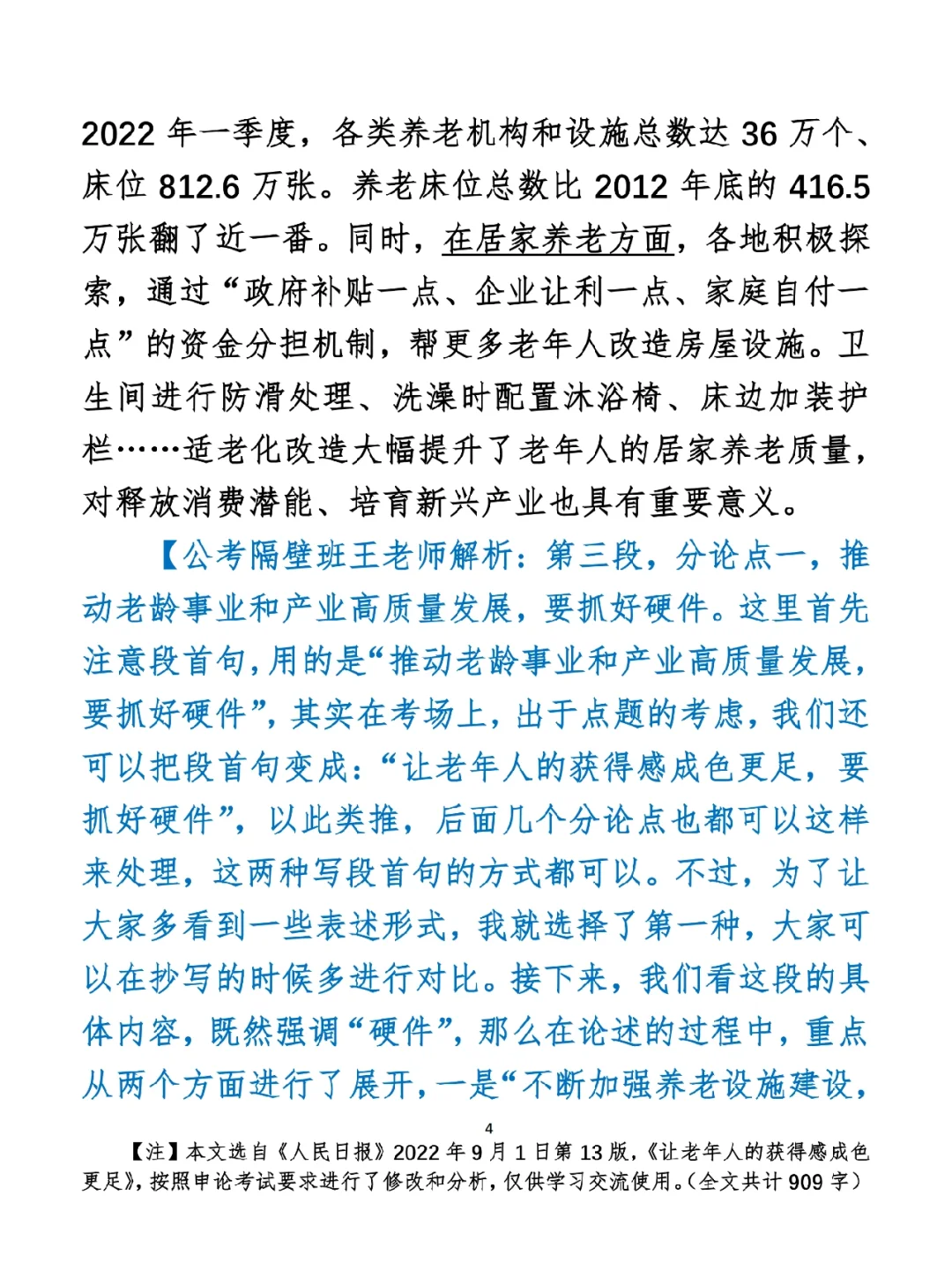 今日打卡作业: 1. 选一句你最喜欢的金句 2. 抄写全文红字+划线部分内容 3. 写完后在留言区打卡 ⭐️ ⭐️ ⭐️ ⭐️ ⭐️ ⭐️ 如何抄写:每天的抄写文章以图片形式发在“公考隔壁班王老师”账号,红色字是重点句和结构句,黑色字是正文,蓝色字是解析,大家抄写时不必抄蓝色字。建议先通读全文(包括蓝色解析部分),做到心中有数再开始抄写,效果会更好。 关于文章:抄写文章来源于人民日报,但每篇文章我都根据申论考试要求进行了修改,主要集中在四个方面:一是重写或修改开头、结尾;二是统一段首句句式结构;三是调整段落字数,使文章结构更均衡;四是简化复杂长难句,使之更具可模仿性。每篇文章修改幅度不同,无论修改多少,都是基于申论考试要求,毫无对人民日报文章品评之意。(此处致敬人民日报) 关于解析:我会在文章每段后面加一段蓝色字的解析,是我自己在抄写时的感悟,篇幅时间有限,不能面面俱到,但求重点突出。如果你有其他感悟,也希望能在评论里分享,我们相互学习、共同进步。 ⭐️ ⭐️ ⭐️ ⭐️ ⭐️ ⭐️ 这里是公考隔壁班王老师独创的“每天半小时・申论80分”抄写团,欢迎加入我们!