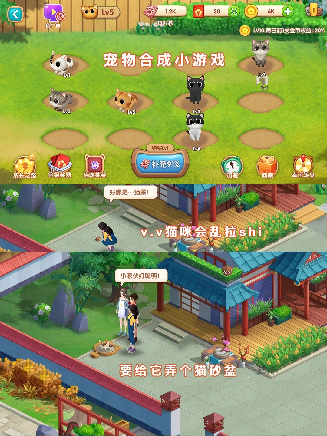这个游戏里还可以养小宠物🐈猫咪,一开始是一只小花喵2333~