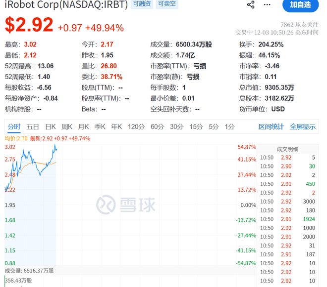 其中,美股机器人概念股板块拉升,特斯拉股价大涨3%,iRobot股价暴涨超50%。