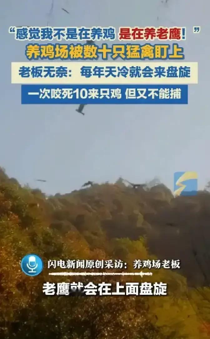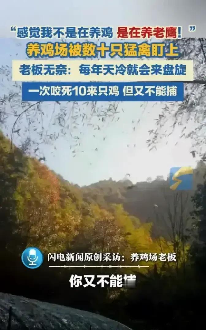 杭州老哥养了两百多只走地鸡,结果入冬后老鹰组团打卡,每天准时俯冲,鸡圈秒变外卖窗口。 他挂光盘、插彩带、敲铁盆,全成摆设,五天被叼走三十多只,心疼得直跺脚。 视频里他举着半截鸡翅膀,画面比恐怖片还真实。 我隔着屏幕都闻到血腥味,也闻到钱包漏风的叹息。 国家二级保护动物打不得,鸡又舍不得,只能干瞪天。 网友支招装网子,他苦笑兜里只剩鸡毛。 生态好了,人却先疼,这账真不好算。 官方已上门搭网,损失有望补。 保护翅膀也要护住饭碗,别让好人独自扛天。