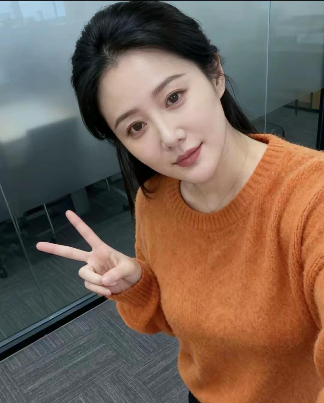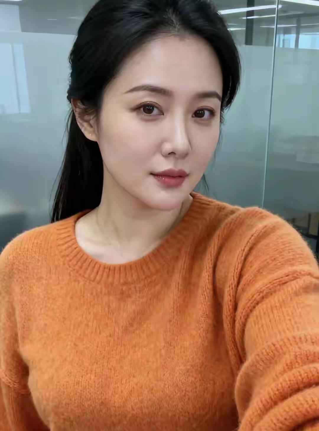 漂亮姐姐穿着橙色毛衣微笑,仿佛把夕阳穿在了身上,在阴天里做着温柔的反叛,这画面成了生活中具体又美好的快乐。