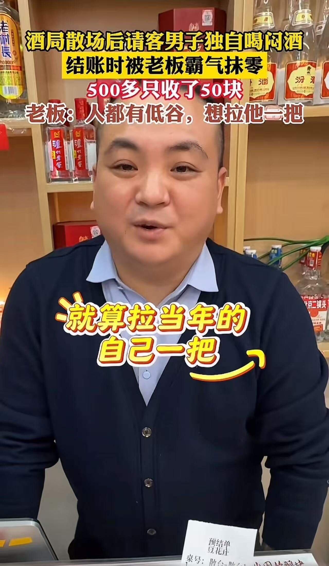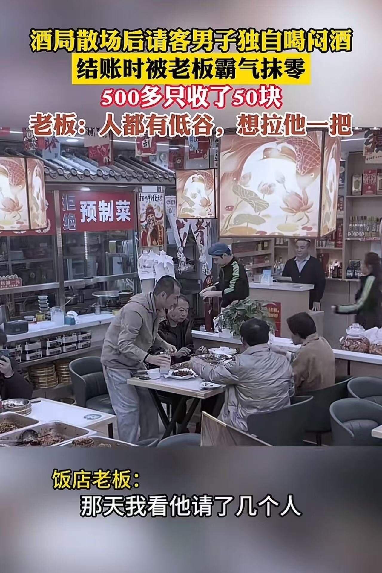 男子请朋友喝酒,想把自己当初借出去都钱要回来,可朋友一听要钱就跑了!男子一个人坐着喝闷酒,被老板看见后,老板霸气抹零,560 块钱只收 56 块钱!老板:“人都有低谷的时候,想拉他一把!” 在这个快节奏、充满竞争的社会里,我们每个人都在拼搏、在奋斗。有时候,生活会用意想不到的方式告诉我们:真正的朋友,不仅仅是在你顺境时陪你喝酒、炫耀成就,更是在你低谷时愿意伸出援手、帮你一把的人。这个故事,或许会让你重新审视“友情”的定义,也会让你对身边的人多一份理解和感恩。 男子请朋友喝酒,本是为了表达心中的一份信任和期待——希望借酒消愁、借朋友的陪伴缓解压力。然而,当他提到要回借出去的钱时,朋友一听到“钱”字,立刻像被点了火药似的,立马掉头就跑。这一幕,似乎在告诉我们:在某些人眼中,所谓的“朋友”或许只是利益的附属品,一旦利益受损,立马变脸,毫不留情。 男子一个人坐在角落里,喝着闷酒,脸上的失落与无奈写满了整张脸。或许他在心里反复问自己:为什么曾经的朋友会变得如此冷漠?难道友情真的只是“有用时在一起”,一旦遇到困难就会离开?这些问题,像针一样扎在每个曾经相信友情的人的心头。 而就在这个时候,老板的出现,像一股暖流,瞬间温暖了男子的心。老板霸气地抹掉了那560块钱的账单,只留下了56块钱——这是多么震撼的举动!老板说:“人都有低谷的时候,想拉他一把。”这句话,简单却深刻,仿佛在告诉我们:真正的善意,不在于金钱的多少,而在于那份愿意伸出援手的心。 这不仅仅是一次普通的“抹零”,更是一份对人性最真实的洞察。在这个社会上,很多人习惯了用利益衡量一切,但其实,人与人之间最珍贵的,永远是那份真心与善意。就像老板那一抹零,或许对男子来说,是一份无声的鼓励,一份希望的火苗。 我们常常会遇到这样那样的“低谷”,有人选择了逃避、冷漠,也有人选择了理解、帮助。故事中的老板,或许只是众多善良人中的一个缩影,但他的行为,却折射出人性中最温暖的一面:在别人最需要帮助的时候,愿意为他们点亮一盏灯。 其实,生活中我们每个人都在扮演着不同的角色。有时候,我们是那个需要帮助的人;有时候,我们又是那个愿意伸出援手的人。无论是哪一种,都值得我们去深思:我们是否也能在别人最困难的时候,成为那束温暖的光? 这故事让人感慨良多,也让我们反思:我们身边的“朋友”是否都值得信赖?我们又是否在关键时刻,能成为别人的“老板”,用一份善意去温暖他们?答案或许因人而异,但只要心存善念,每个人都能成为别人的“老板”,为这个世界带去更多的温暖。 最后,希望每一个在低谷中的你,都能遇到那份温暖和善意;也希望每一个在阳光下的人,都能记得:善良,从来不是一件稀罕的事情,而是一种力量,一份责任。让我们都成为那个愿意拉别人一把的人,无论何时何地,都能用一份善意,让这个世界变得更加美好。 因为,真正的朋友,不在于你借出去的钱,而在于你借出去的那份信任和善意。请朋友喝酒 请人喝酒