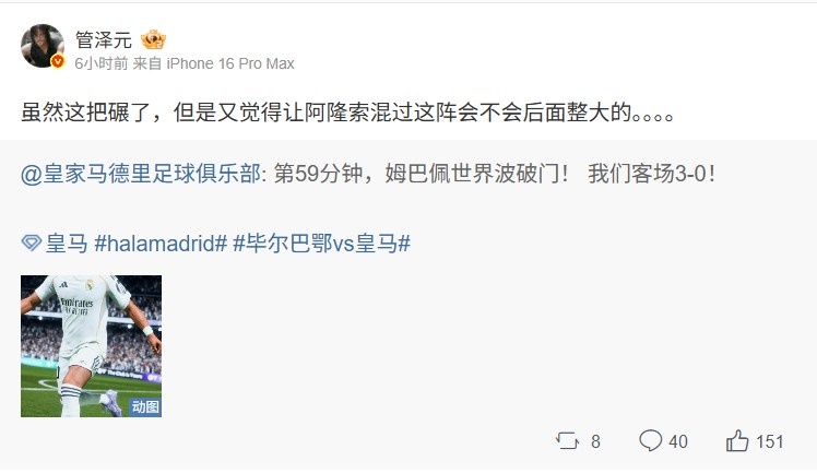 管泽元看皇马3-0毕巴:让阿隆索混过这阵会不会后面整大的......