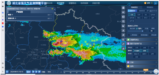 2024年6月18日,通过湖北省一体化平台识别出武汉新洲的雷暴大风
