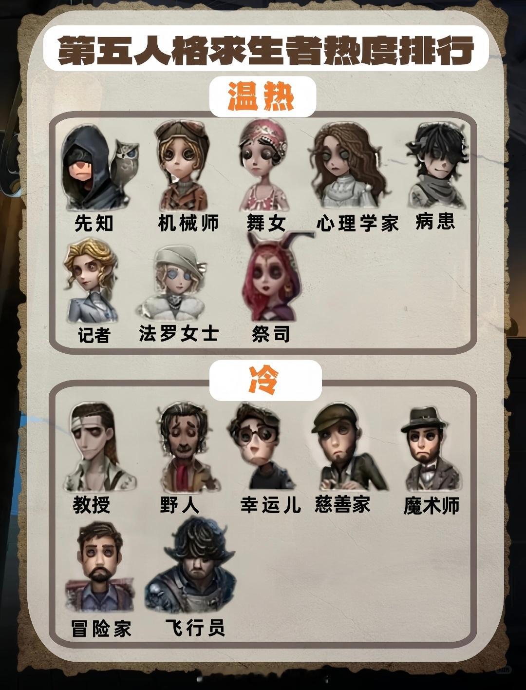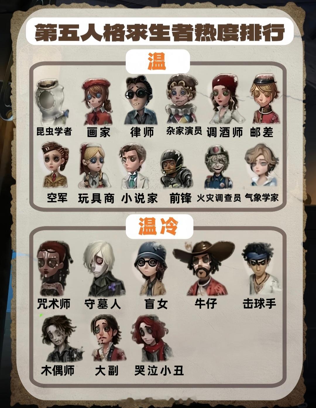 第五人格玩家自制求生者热度排行,你们觉得合理吗?第五人格