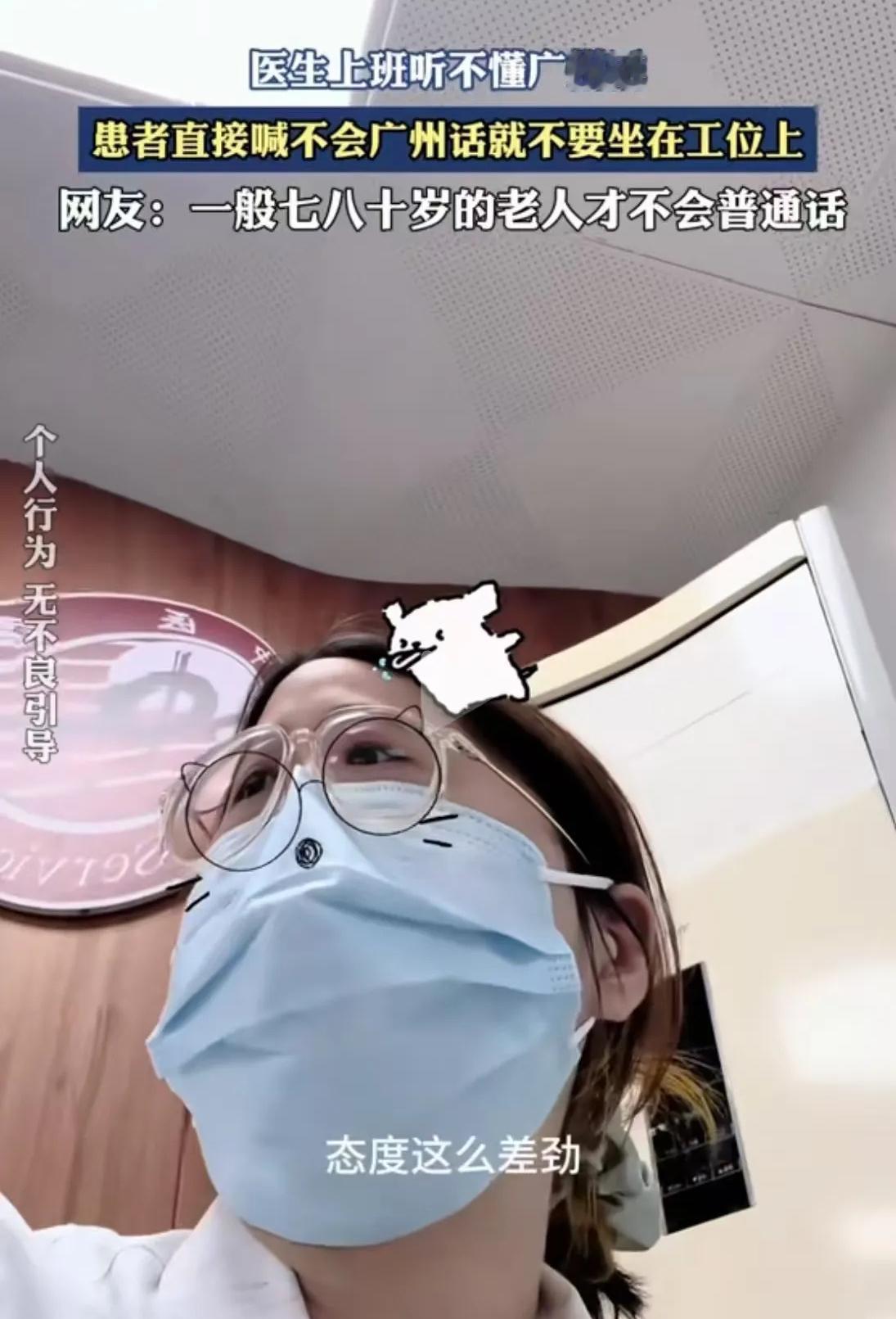 广州一医生不会广东话,被病人吐槽,遭到网爆。这是个大龄的患者,开口和医生说的广东