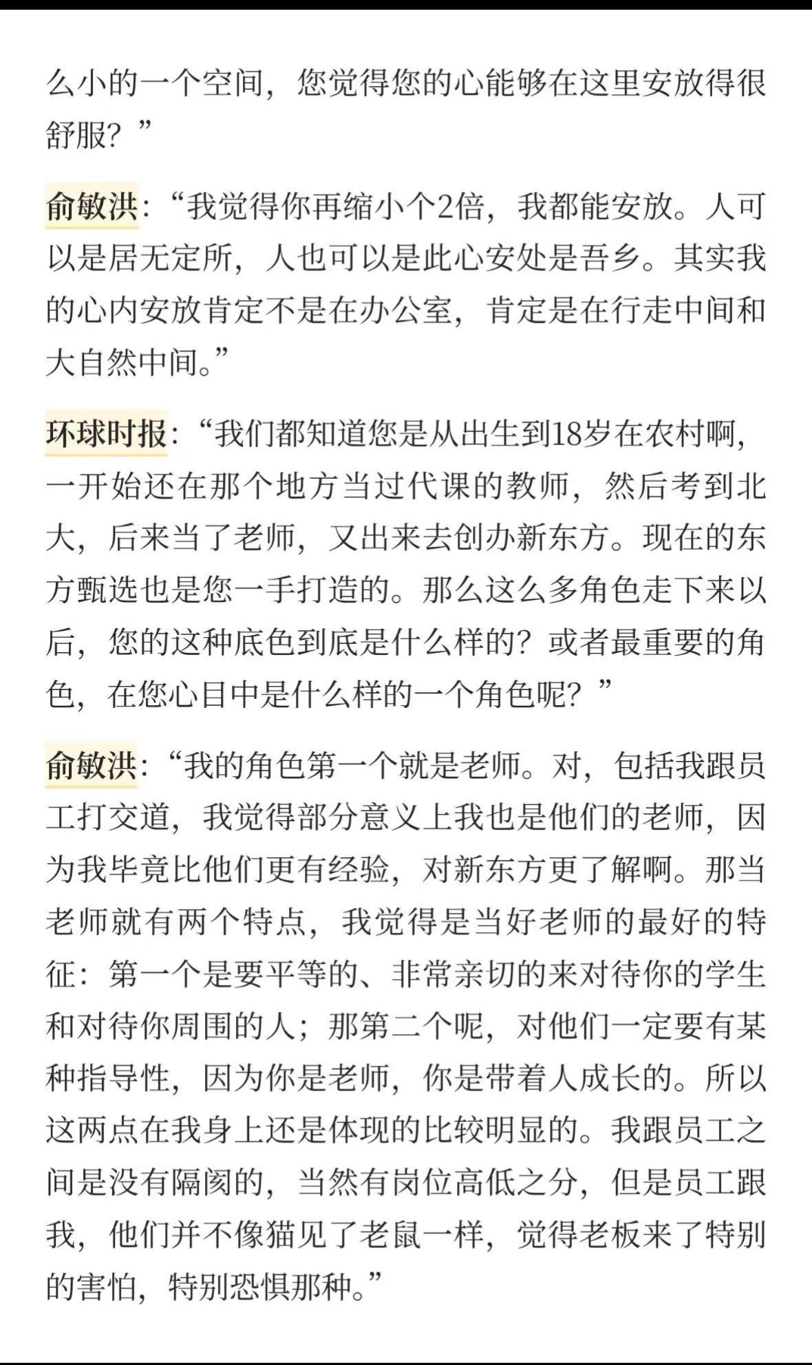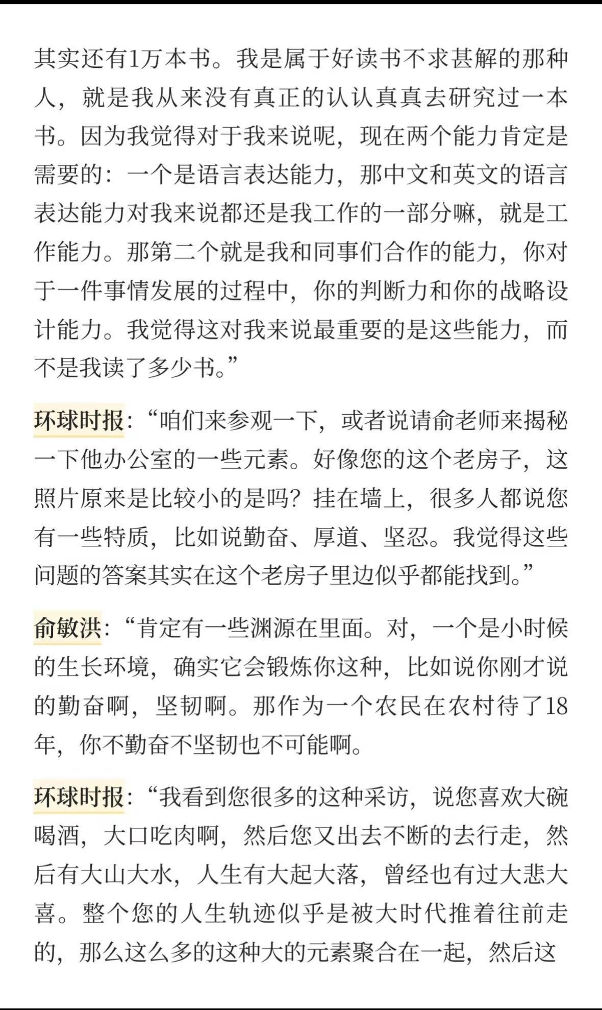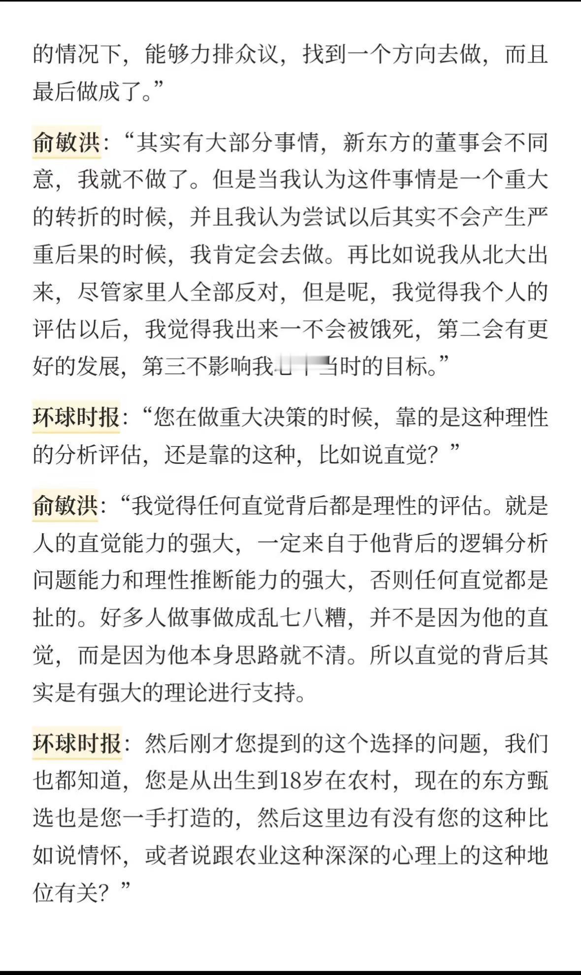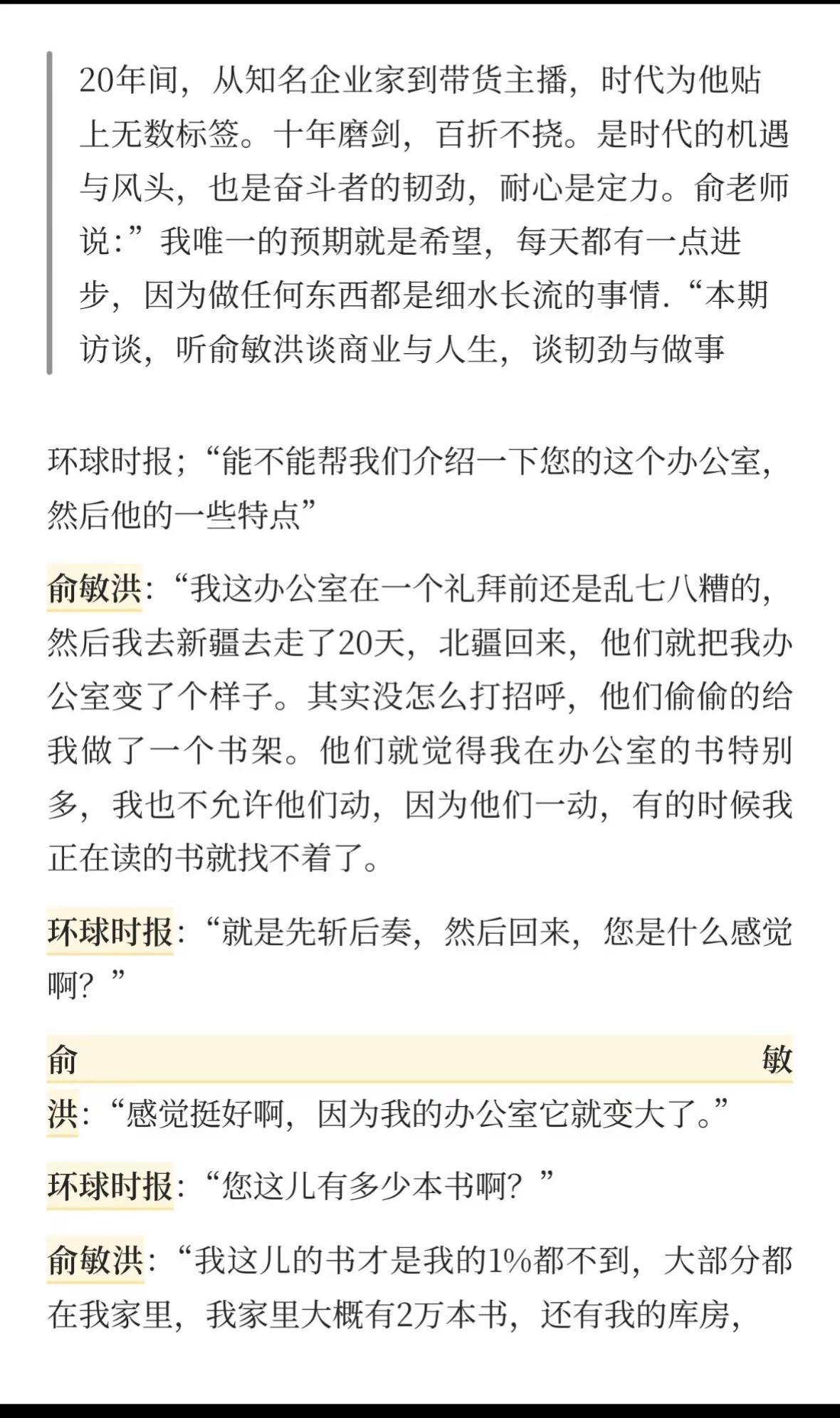 对话俞老师(环球时报高端访谈)纪要。里面如果有出现错别字,请见谅东方甄选