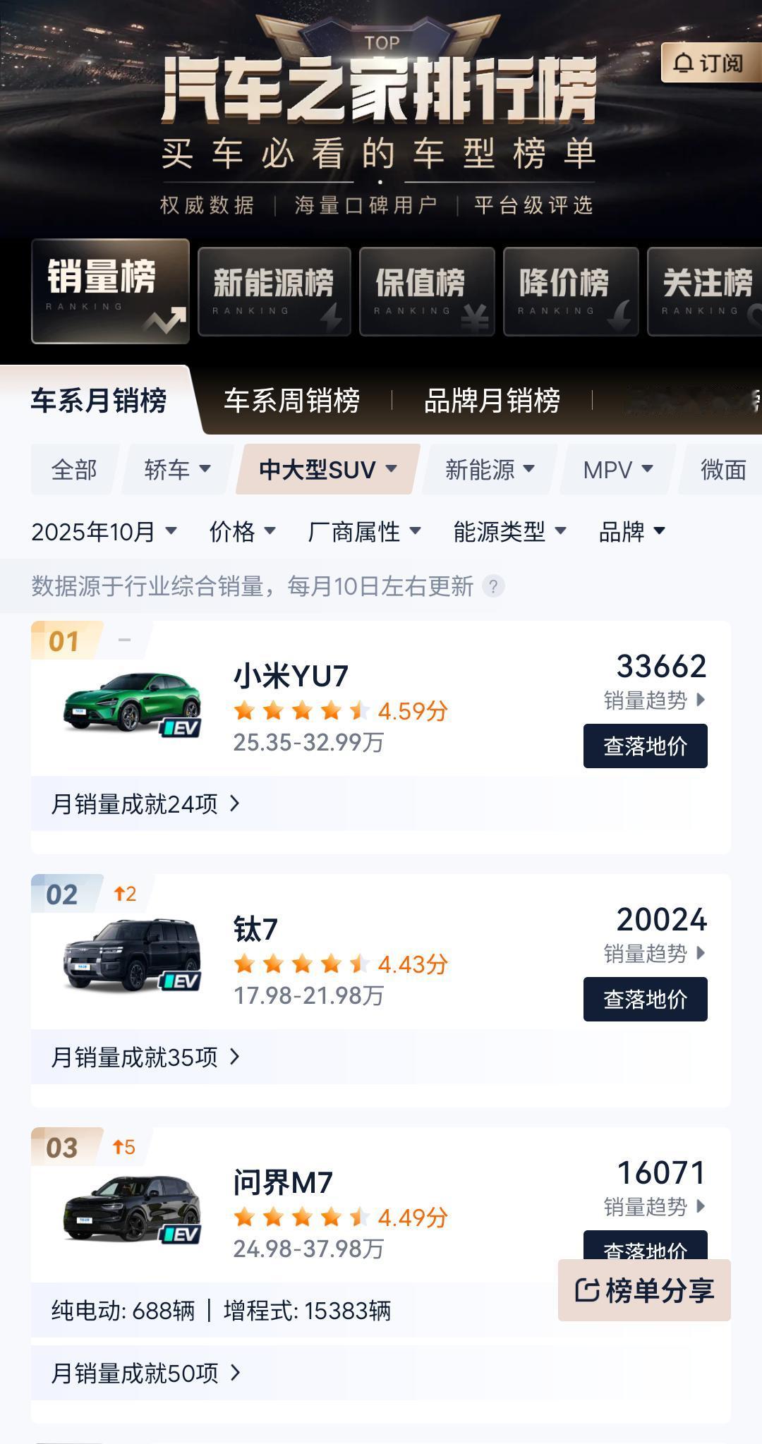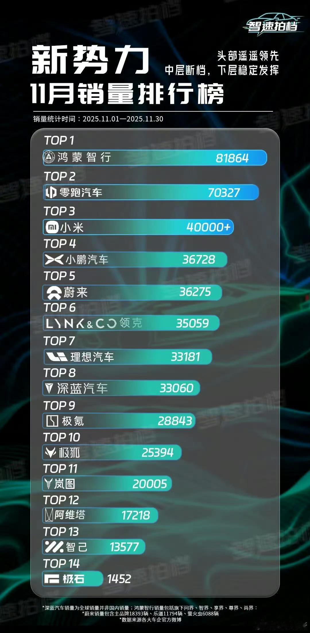 是谁说比亚迪不行了?你看这不就啪啪打脸,11月销量48万辆! 最近看到不少博主唱衰比亚迪,说比亚迪的销量下滑了(主要是对比比亚迪10月的销量),但我懒得反驳,让子弹飞一会儿,数据自然会说话。 比亚迪11月单月销量超过48万辆,1-11月的累计销量达到418万,离年初的460万辆目标还差42万辆,考虑到12月份是旺季,凭借产品矩阵和销售体系,比亚迪的今年完成任务是妥妥滴。 比亚迪11月的销量为啥这么猛,除了基本盘稳以外,最近又有两款车火爆出圈了,一款是海狮06,一款是方程豹钛7,两款SUV最近非常出圈。海狮06上个月销量2.6万,超过特斯拉的毛豆Y成为中型SUV市场第一。而钛7目前已经一车难求,一个月销量2万+,成为中大型SUV的TOP2(10月数据),应该过不了几天,11月的数据就会更新。 另一个恐怖的事情是:方程豹靠着钛7,整个品牌月销量已经达到4万辆级(3.74万辆),单是方程豹这个子品牌已经超过蔚小理,跻身新势力TOP4(新势力前三是鸿蒙智行、零跑、小米)。方程豹已经开始发力,要是腾势再次出个爆款,那么在豪华品牌区间也将站稳脚跟。 当然,11月销量或者说比亚迪全年销量取得如此大进步的原因,海外市场也要占很大比例,今年1-11月海外市场销量突破91万辆,再加上12月,那么今年的海外销量已经是百万级,在整个销量版图中海外占比进一步提高。 我一直提倡比亚迪走出去,一方面国内新能源市场比亚迪已经占了大半壁江山,市场渗透率非常高,想要再进一步难度非常大,想要提升销量,那就必须走出去;另一方面,比亚迪本身就有技术有实力,那就应该走出去,走出去既能展示中国新能源的实力同时自己也能获得更多机会,毕竟比亚迪作为出海的开拓者自然会成为吃到第一口的螃蟹,他有那个实力(技术)也必然该吃第一口。