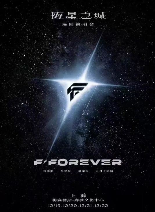 12月4日,大麦网显示,“F✦FOREVER恒星之城巡回演唱会-上海站”即将开售。在最新释出的海报上,言承旭、吴建豪、周渝民、五月天阿信的名字并排在一起。此前,阿信所属公司相信音乐表示,他将担任此次演唱会的制作人。
