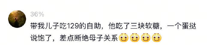 带我儿子吃129的自助,他吃了三块软糖,一个蛋挞说饱了,差点断绝母子关系