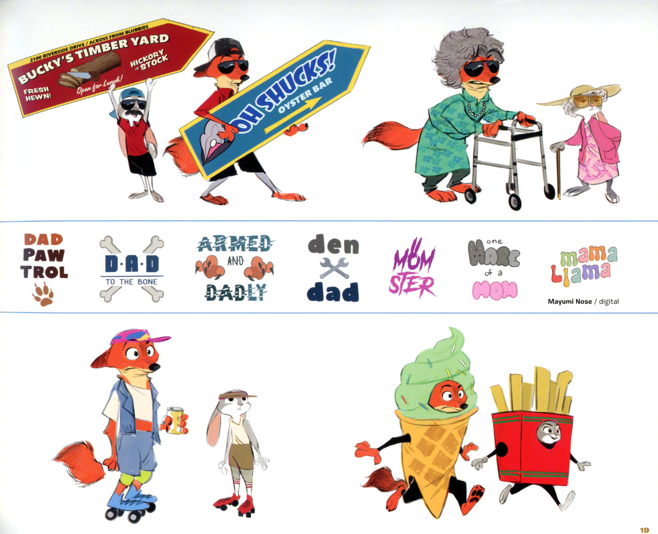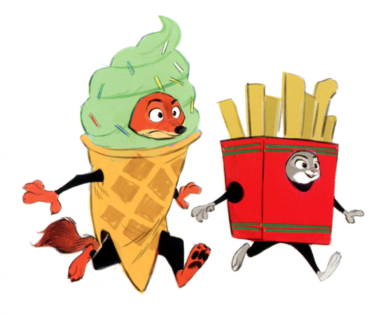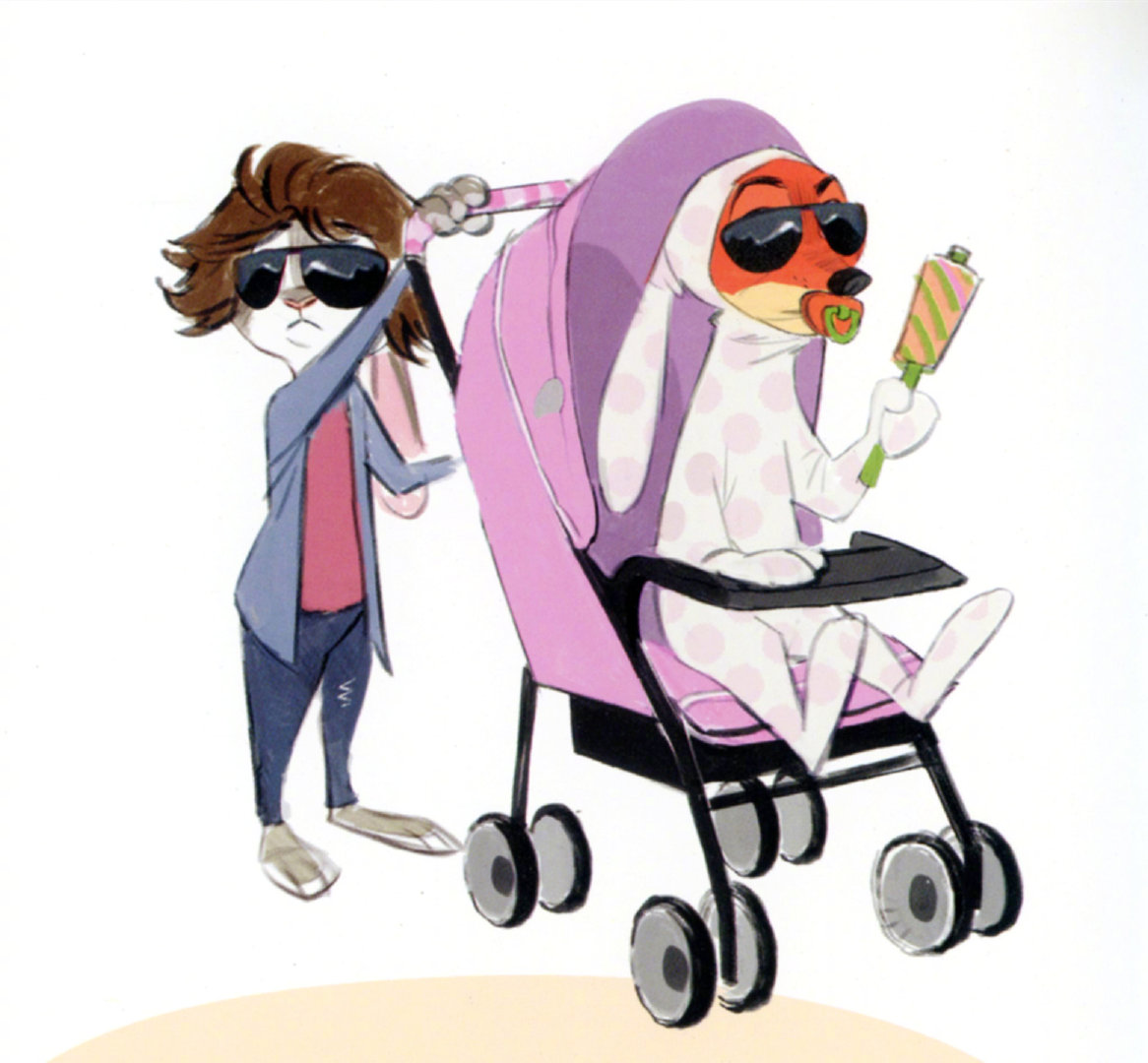 疯狂动物城2概念图中的尼克和朱迪《疯狂动物城2》电影艺术书,朱迪&尼克有好多乔装出任务造型,尼克随时配合扮宝宝、老妇人或狗仔 迥异性格搭出和谐画风~ 来自动画设计师 Ami Thompson。.和朱迪尼克一起重返动物城 跨年电影愿