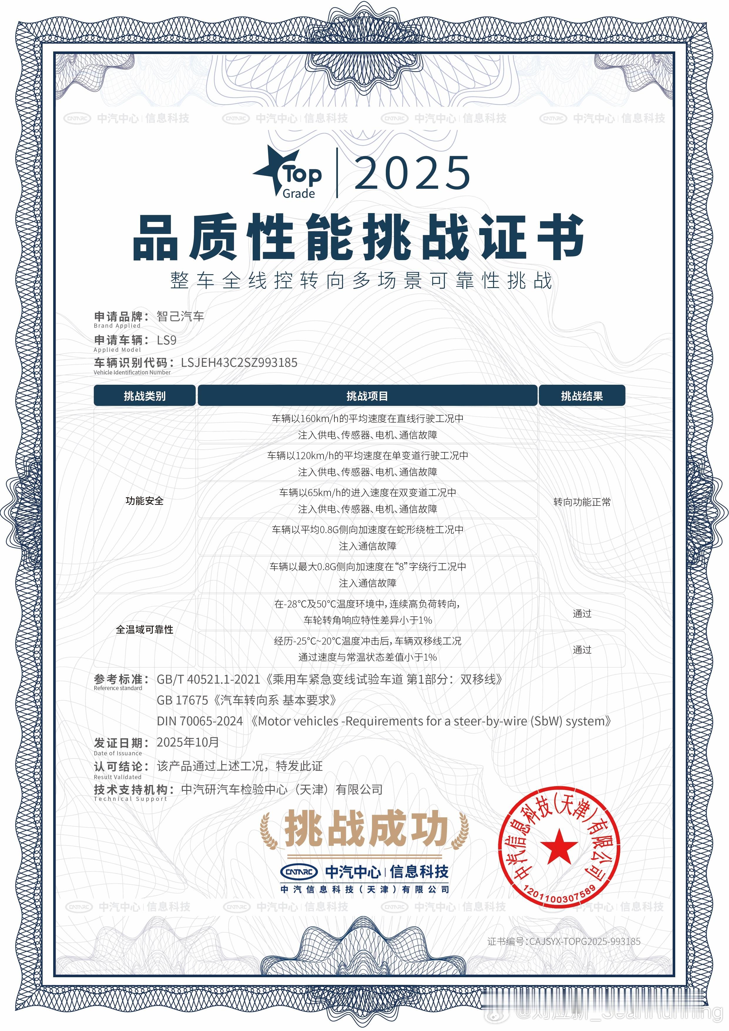 12月2日,GB17675 - 2025《汽车转向系 基本要求》国标发布,为线控转向等前沿技术规模化应用筑牢法规根基,中国智能汽车产业在关键技术领域实现重大突破!上汽旗下智己汽车是该标准预研与落地的先锋。其旗舰大六座智己LS9 Hyper版将全球率先量产交付,搭载“满血版”灵蜥数字底盘3.0,是首款完全符合新国标且通过中汽中心验证的具备全线控转向能力的量产车,还通过多场景可靠性挑战测试认证。此外,该车还配备高性能三电机矢量四驱系统。两大黑科技加持,让大型SUV拥有灵动操控与安全体验。上汽旗舰智己LS9