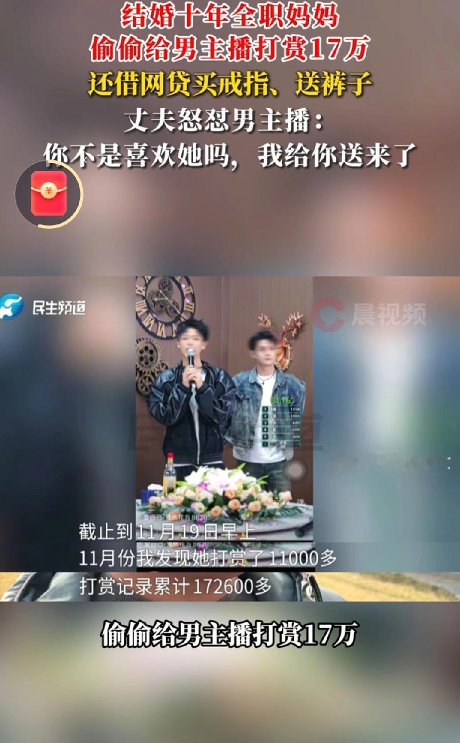 全职妈妈沉迷男主播 5个月打赏17万,丈夫根据外卖地址直接找了过去。妻子不光打赏