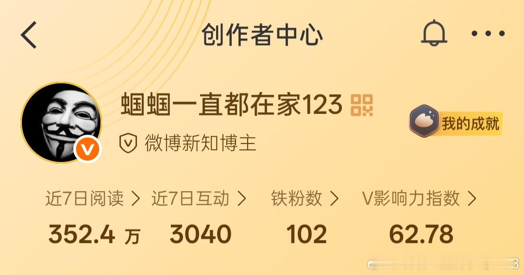 有一段时间挺在意啥铁粉数量的。看着100左右晃悠的铁粉,有那么点患得患失。还好有唯一金粉持续给我更新动力当然,实际更可能还是没掌握流量玩法没掌握规则,输出也不够犀利因此,一直没找到敌人也没找到“志同道合的朋友”不过...自从有一次掉下成为黄v之后就洒脱多了,爱咋咋地吧不患得患失,心态放开了各种数据反倒是能好起来呢。 想了想,橙v的唯一好处就是...能有官方的vvip,有那么点广告分成(虽然...分成才不到100块,等凑够100块了给各位粉丝们再分出去)
