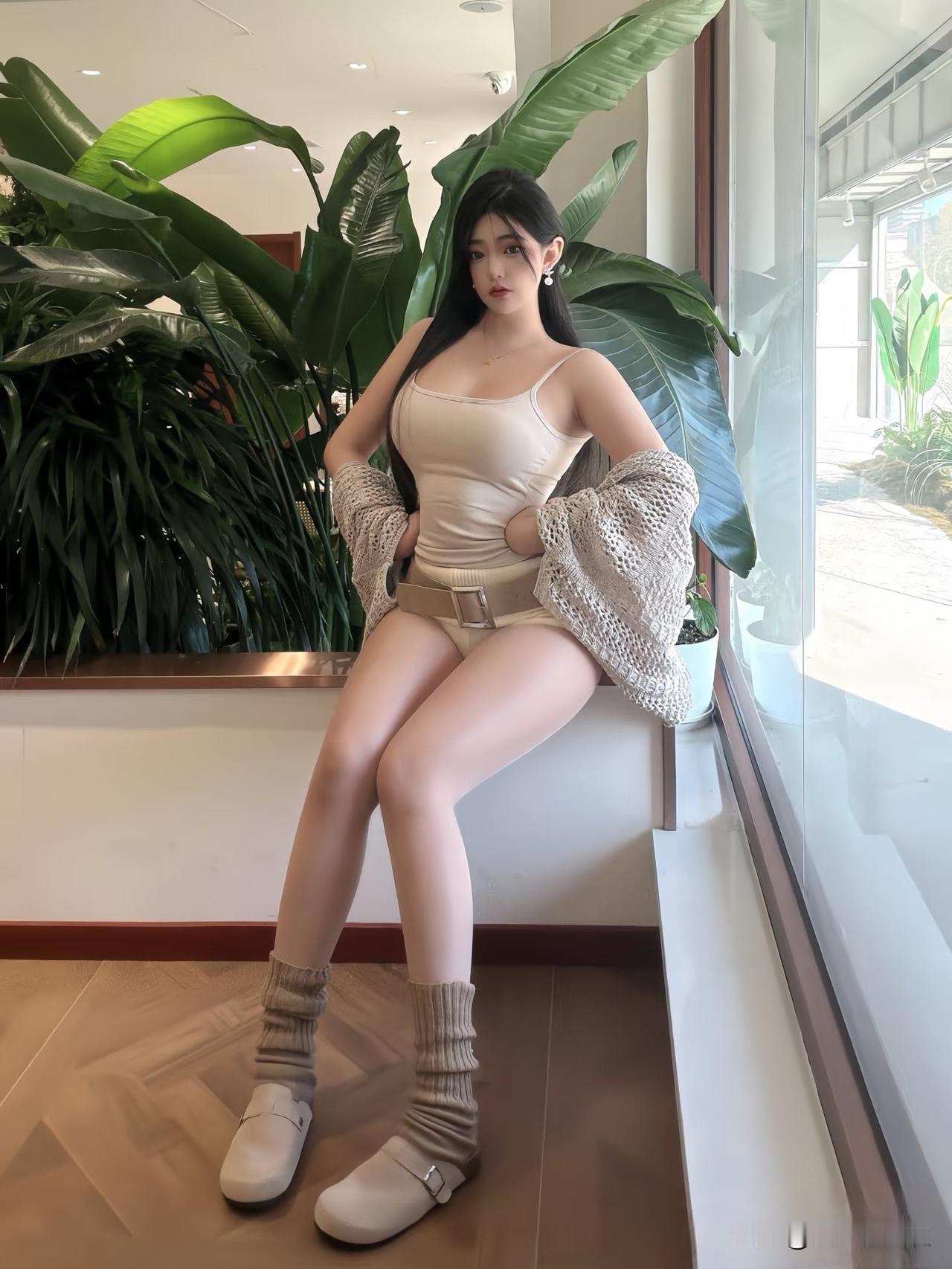 美女姐姐的穿衣风格展现了时尚与舒适的完美结合,她选择了一件简约的吊带上衣,搭配宽松的针织开衫,既突出了身材线条,又增加了层次感,下身穿着短裤,搭配高筒袜和休闲鞋,整体造型既休闲又不失时尚感,这种穿搭风格适合日常出行或休闲场合,展现了轻松自在的时尚态度,背景中的绿植也为整体画面增添了一份自然与清新。简约吊带穿搭 针织吊带穿搭 针织连衣裙穿搭 针织显瘦穿搭 简约针织穿搭 针织开衫女穿搭 针织开衫穿搭