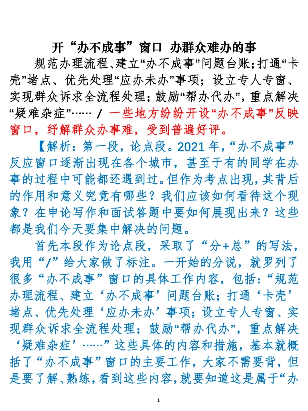 2021年,“办不成事”反应窗口逐渐出现在各个城市,甚至于有的同学在办事的过程中可能都还遇到过。但作为考点出现,其背后的作用和意义究竟有哪些?我们应该如何看待这个现象?在申论写作和面试答题中要如何展现出来?这个点考试很容易出,我们要好好琢磨。 ⭐️ ⭐️ ⭐️ ⭐️ ⭐️ ⭐️ 这里是公老隔壁班王老师独创的“每天半小时?申论80分”抄写团,欢迎加入我们! 新来的同学,请进入我的主页阅读置顶文章,一起学习写作。