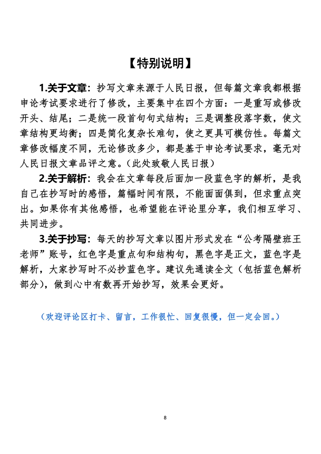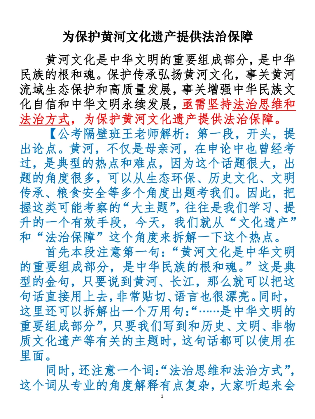 一篇申论范文,涵盖了文化、环保、法治三大考点。不管考什么,总有能用上的知识点,不学真的会吃亏。 今天,我们就用一篇申论范文,一起来学习。 ⭐️ ⭐️ ⭐️ ⭐️ ⭐️ 这里是公考隔壁班王老师独创的“每天半小时 申论80分”抄写团,欢迎加入我们!