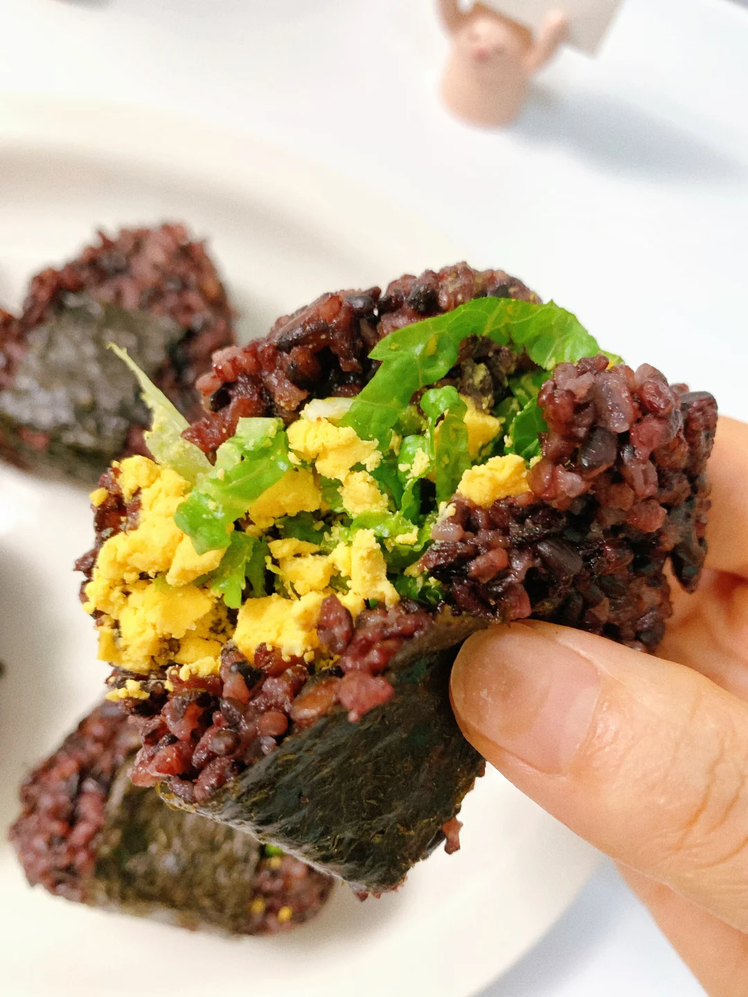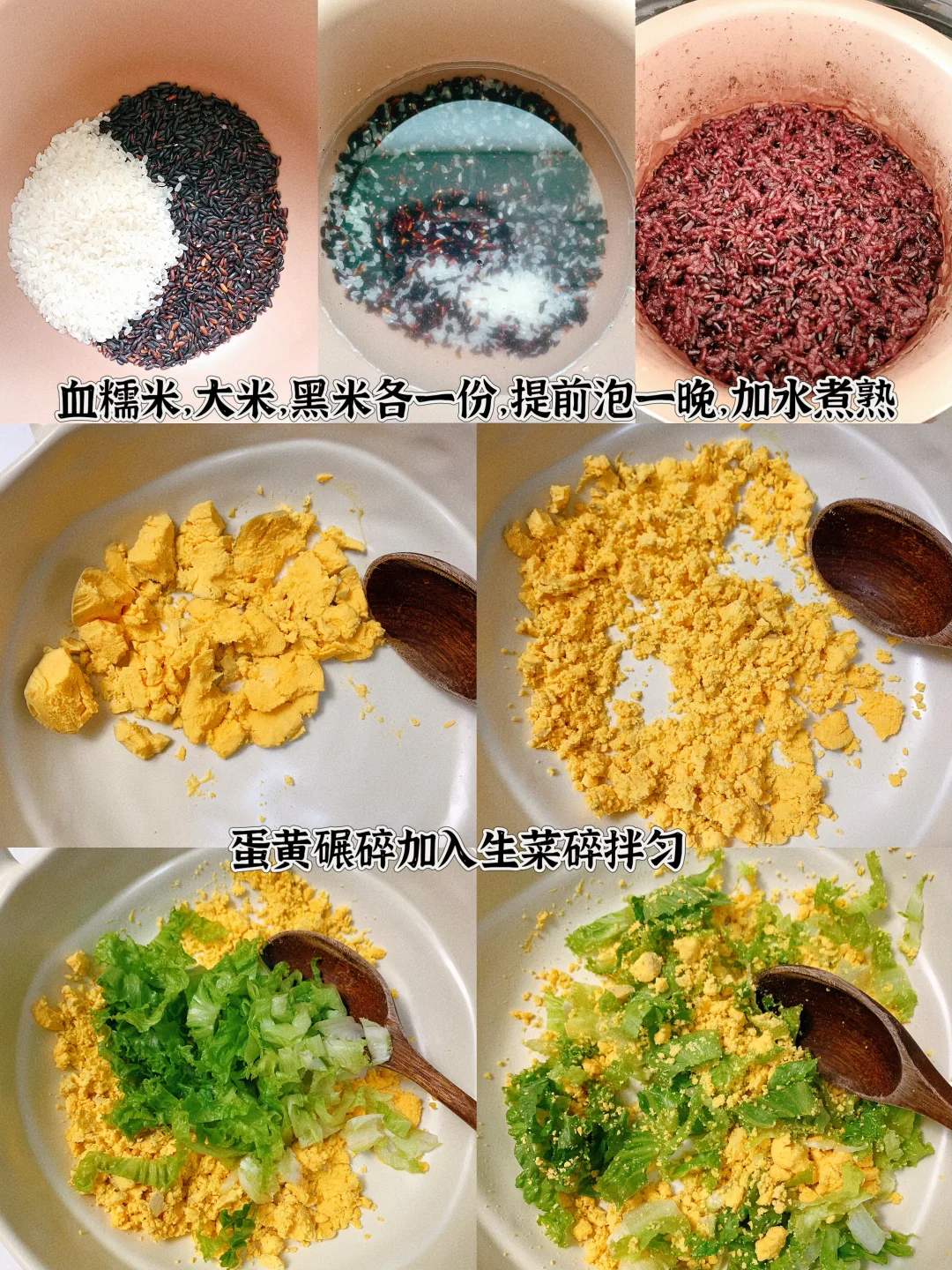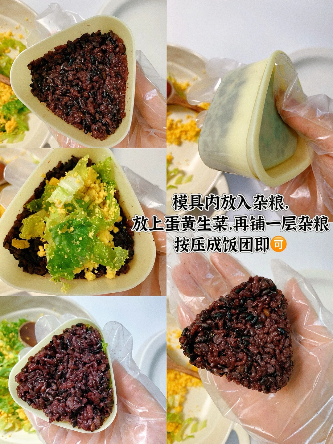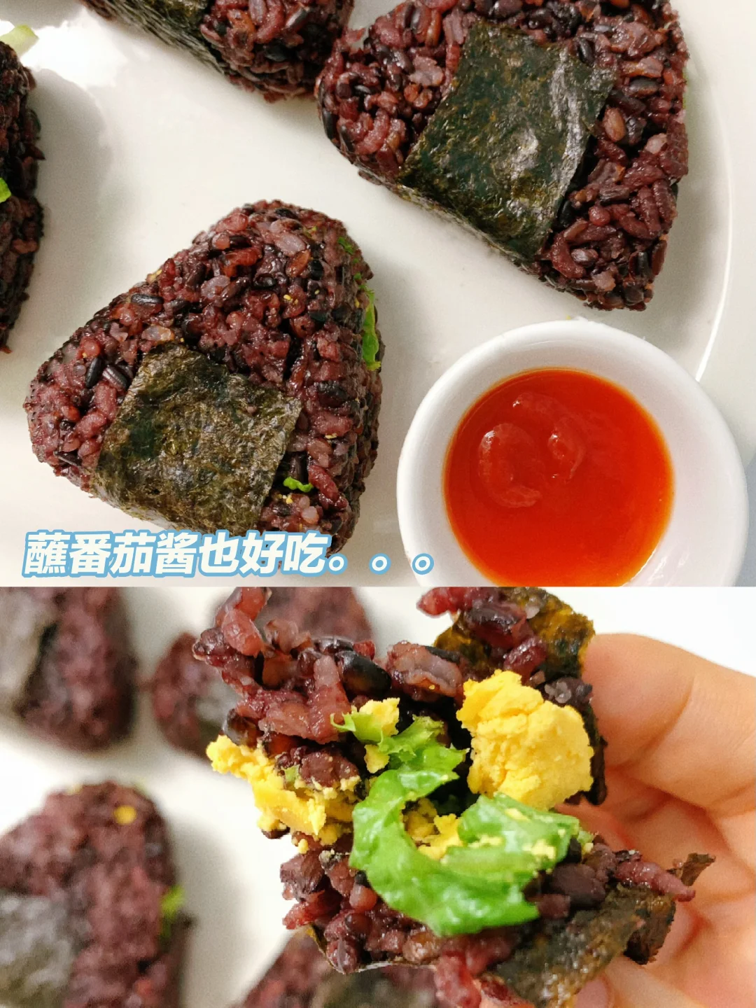 [偷笑R]减脂的姐妹们,普通人的减脂餐,就是家常菜,怎样才能吃瘦呢,请关注我的主页有好多家常减脂餐……………………………………………………………………………… 今日分享:血糯米蛋黄饭团🍙 做法见图片👆🏻👆🏻👆🏻 🕑时间:10-15分钟 ⭐难度:🤞 [向右R]食材:血糯米,大米,黑米,鸡蛋,生菜 ✅碳水:杂粮饭 ✅蛋白质:蛋黄 ✅膳食纤维:生菜 ⚠️可以搭配番茄酱食用