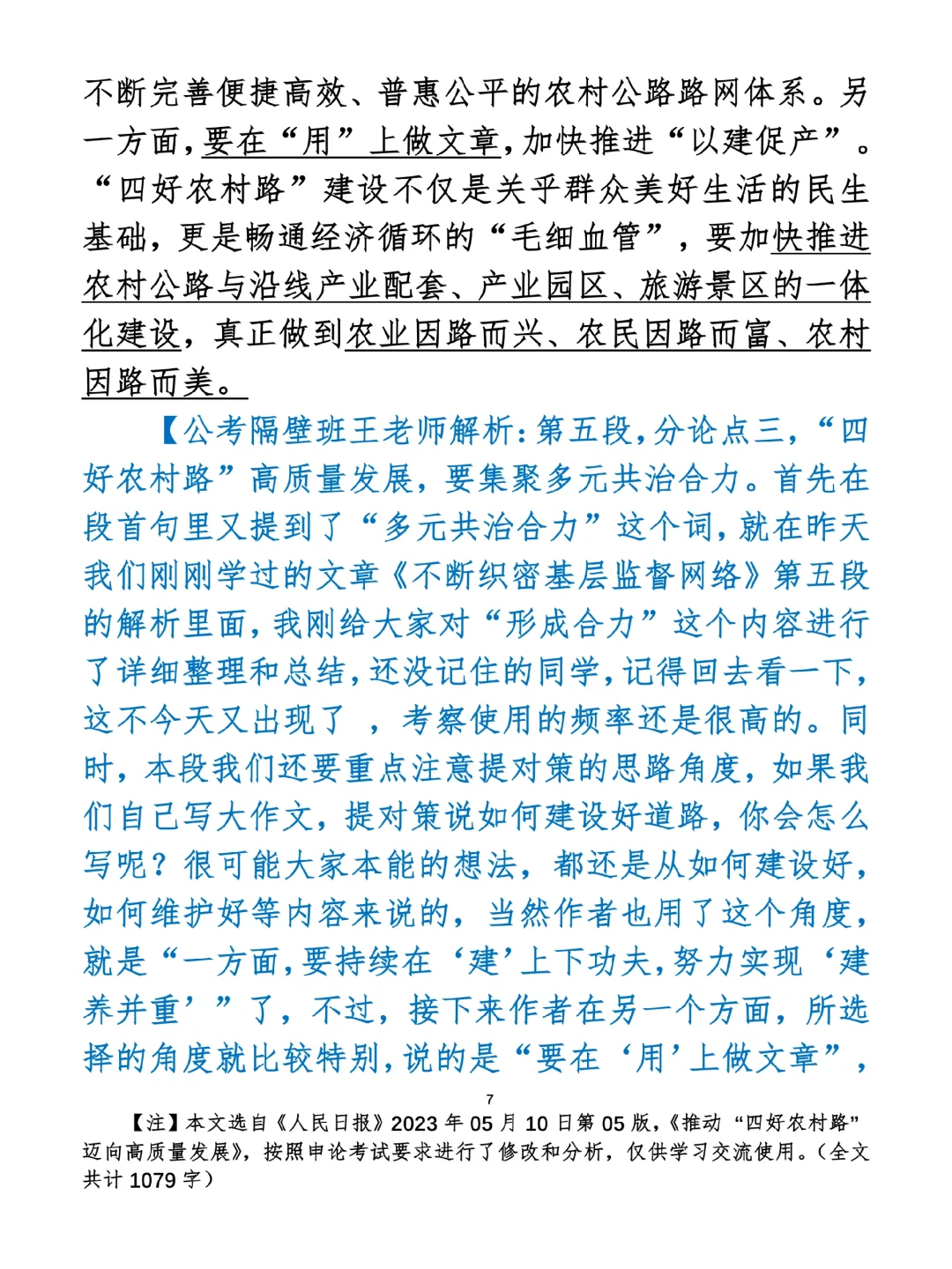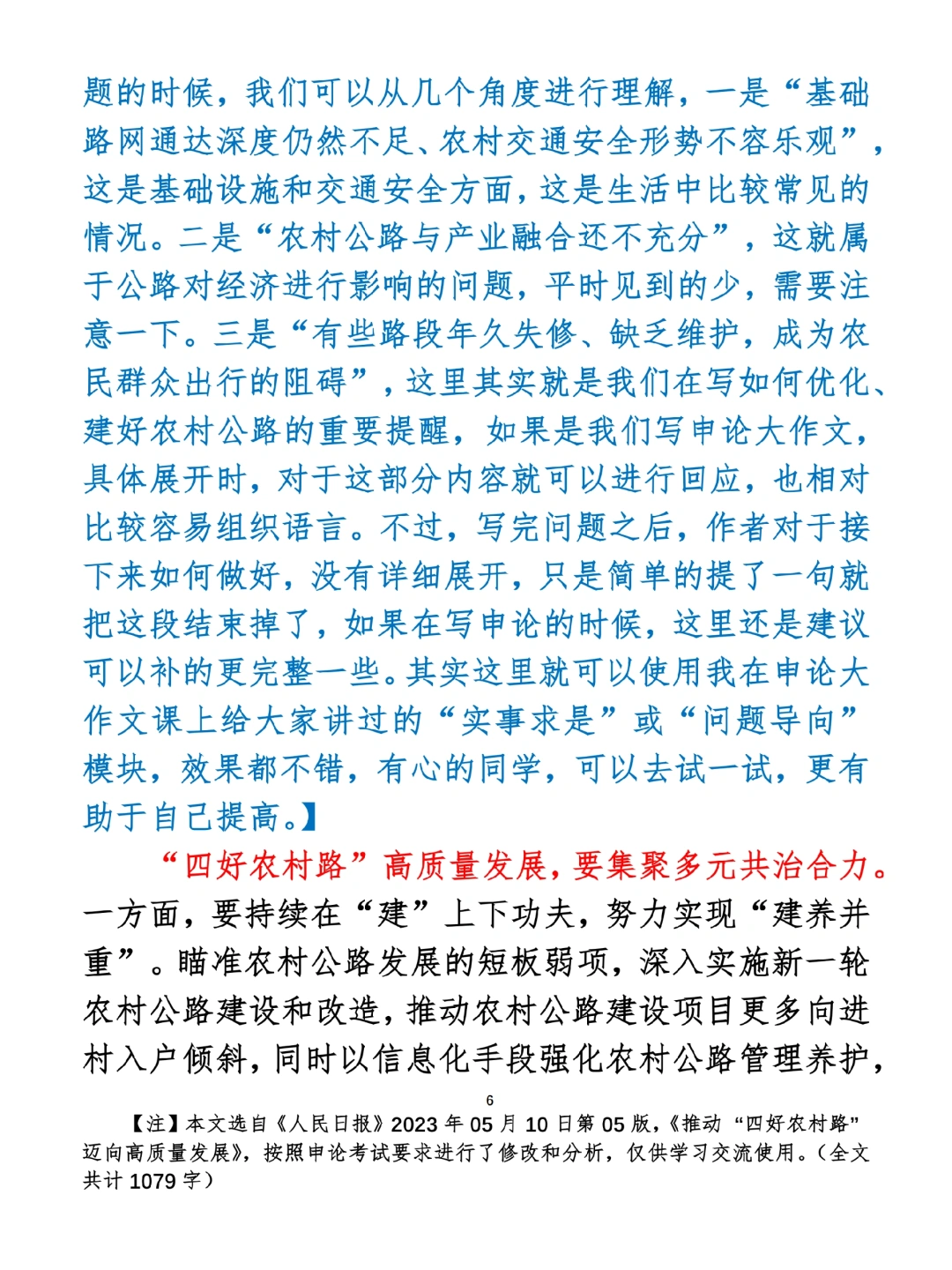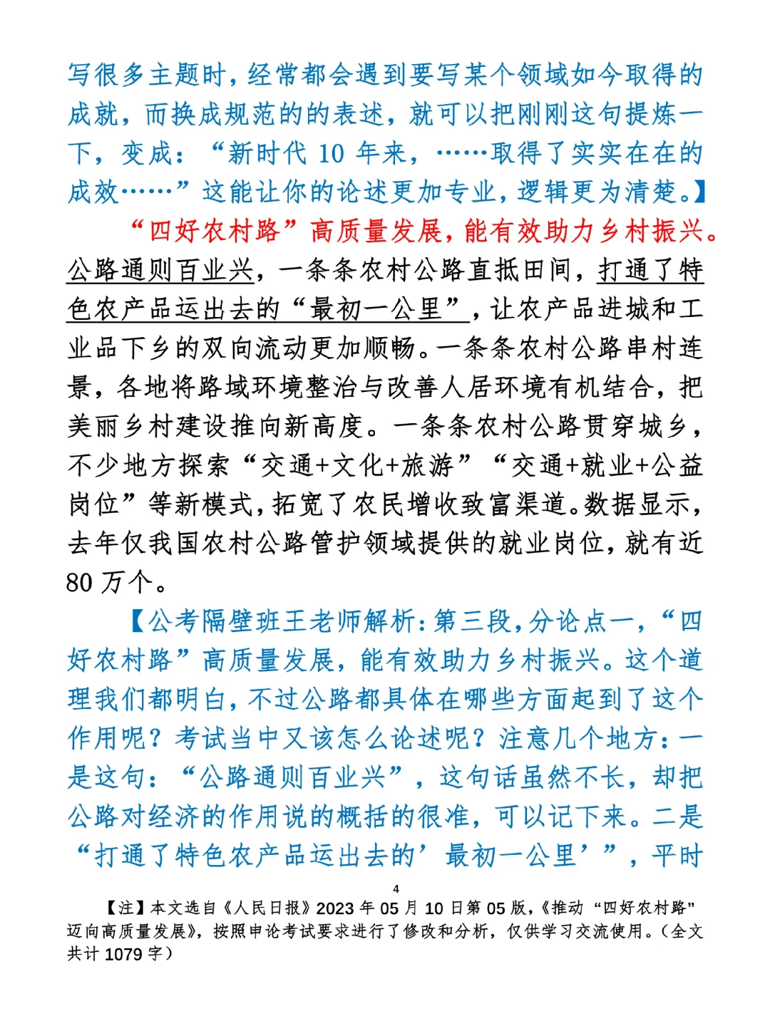 如何抄写:每日抄写文章发在“公考隔壁班王老师”账号,红色字是重点句和结构句,黑色字是正文,蓝色字是解析,大家抄写时不必抄蓝色字。建议先通读全文,做到心中有数再开始抄写,效果会更好。 关于文章:抄写文章来源于人民日报,但每篇文章我都根据申论考试要求进行了修改:一是重写或修改开头、结尾;二是统一段首句句式结构;三是调整段落字数,使文章结构更均衡;四是简化复杂长难句,使之更具可模仿性。每篇文章无论修改多少,都是基于申论考试要求,毫无对人民日报文章品评之意。(此处致敬人民日报)
