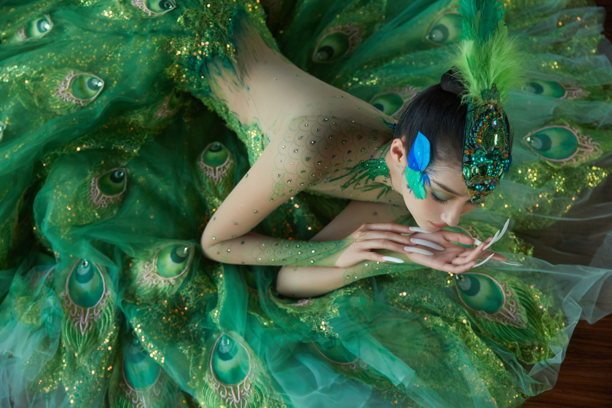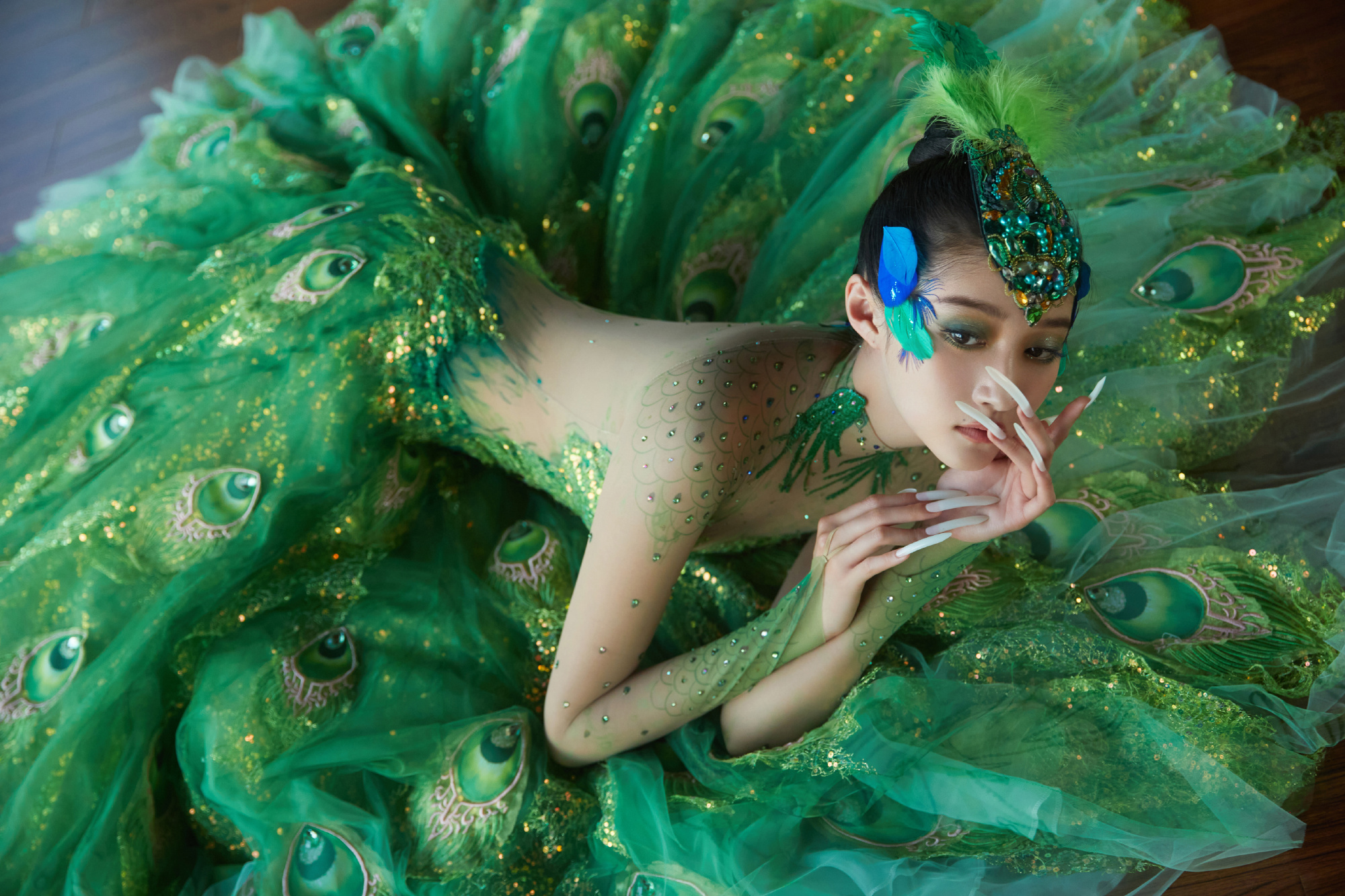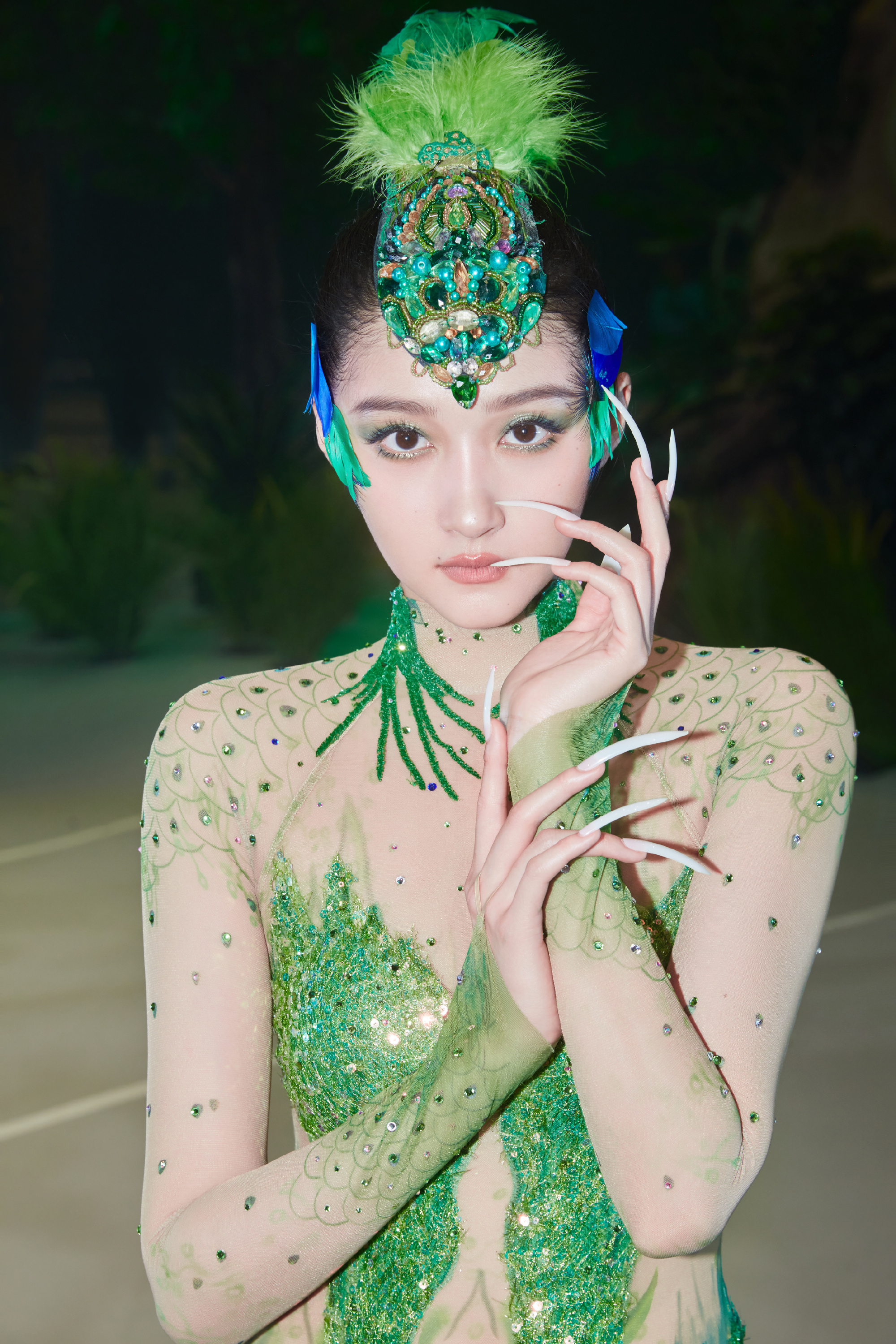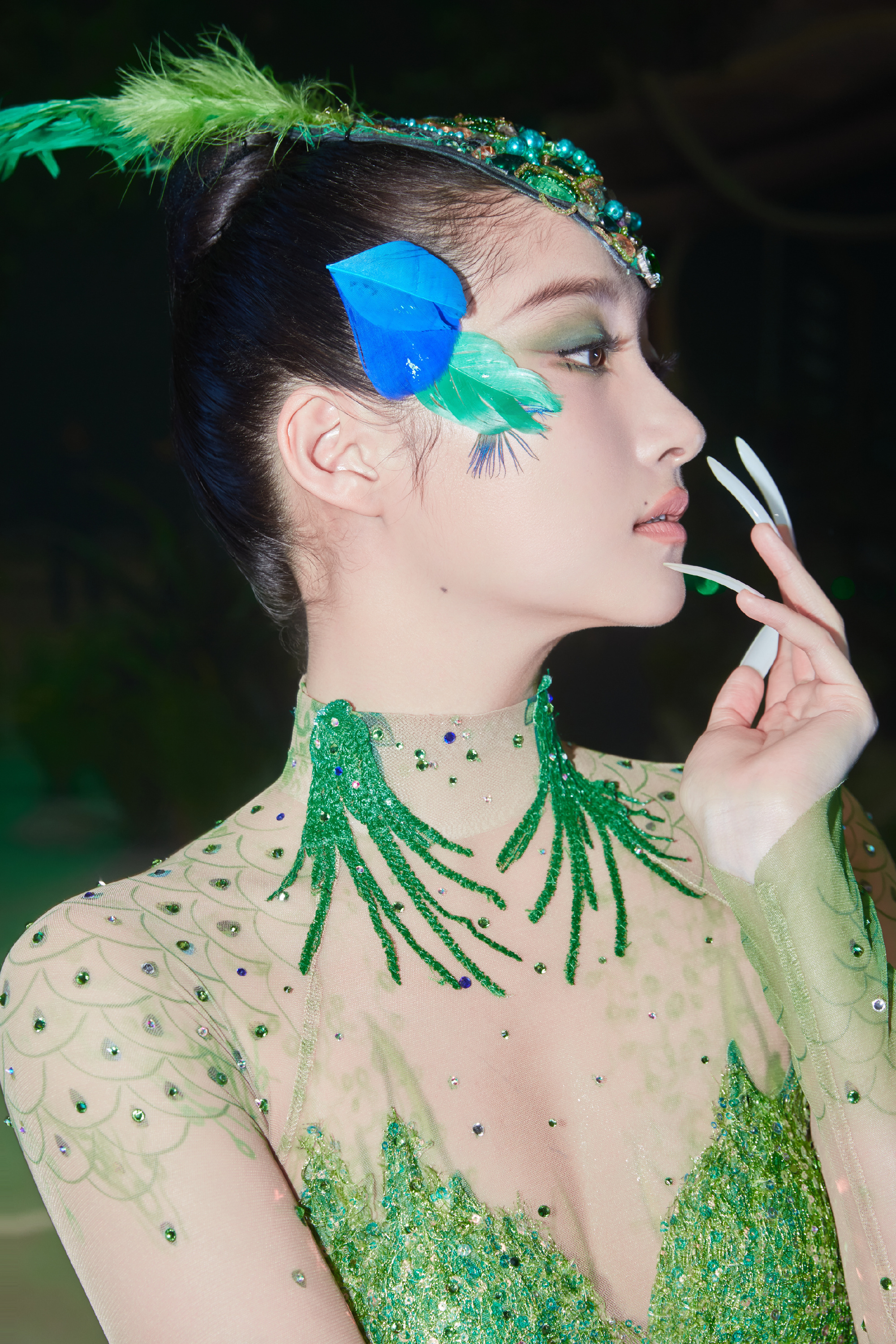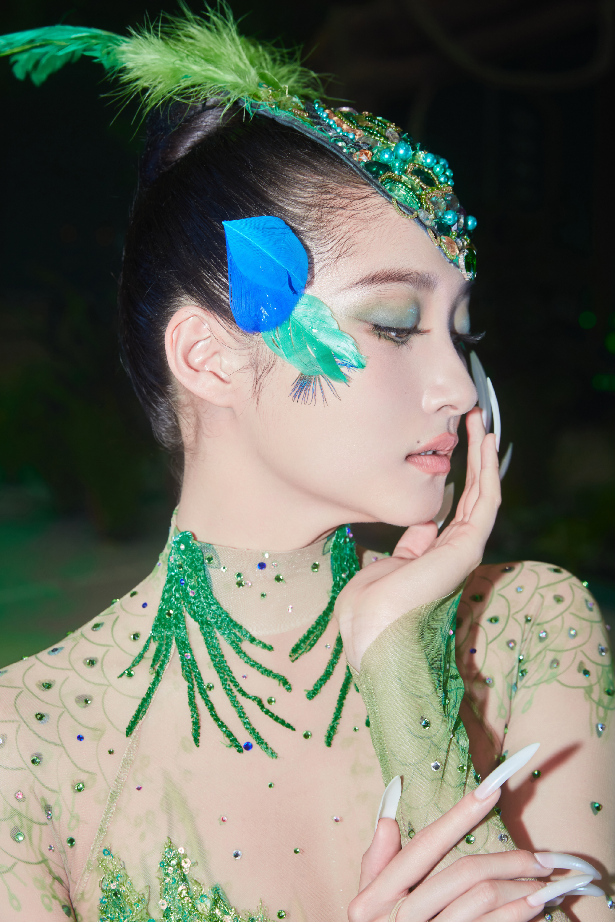 关晓彤雀之灵,绿色仙子造型大片。关晓彤
