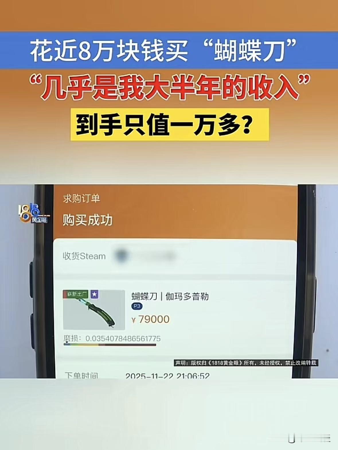 浙江杭州,男子在平台花7.9万买了一个游戏道具,名叫绿宝石蝴蝶刀,但是在购买过程中,漏选了一个选项,最后给男子了一把只值1万多的P3等级的游戏道具,男子不干了,认为卖家钻平台空子,要求平台退货,客服表示已经交易成功,没办法退货退款,男子表示下单后确实有人联系,但当时自己有点激动,没有仔细看,立马点了确认,自己也有责任,但他也表示自己愿意花钱买这个P3蝴蝶刀,但是希望能退一部分差价,减少损失。 小张在杭州打拼了十年,是做室内设计的,平时收入还算可观。 但是他最近遇到了一件烦心事,吃不下饭睡不着觉的。 小张是CS2精英的游戏玩家,他前段时间攒了点钱看上了一把游戏道具名叫“绿宝石蝴蝶刀”,价值7.9万。 这并不是真的实物,而是一把游戏虚拟道具。 小张作为一个老玩家,心里一直有个蝴蝶刀情结,尤其是“绿宝石”这个款式。 在游戏里那可是身份的象征,稀有度拉满,市场价格一直居高不下。 你在游戏里拎着这把刀,走路都带风,队友都得高看你一眼。 小张平时一直在C5平台上蹲守合适的卖家。 这个平台是国内专门做CS2这类游戏虚拟饰品交易的,玩家们买卖装备都爱往这跑。 1前段时间他终于吨刷到了一个“绿宝石蝴蝶刀”的求购匹配信息,标价79000元,和他心里的预期价位差不多,当场就激动坏了。 当时脑子一热,就想着赶紧下单锁定,生怕抢不到。 可万万没想到,自己付了款后,自己却收到一个P3等级的蝴蝶刀,价值也就1万多块钱。 他当时就懵了,赶紧上平台上查看订单,明明自己花了7.9万,没错啊。 可当他点开详细信息的时候却傻了眼,原来里面有个筛选选项他没有选。 其实虚拟饰品和现实里的奢侈品一样,有不同的磨损程度,从高到低分为崭新出厂、略有磨损、久经沙场、破损不堪、战痕累累五个等级。 而P3属于破损不堪等级的简称,不同磨损等级的同款道具,价格能差出好几倍。 像绿宝石蝴蝶刀这种热门款式,崭新出厂的能卖到七八万,而破损不堪的P3等级,市场价也就1万多块钱。 小张见状赶紧联系平台,想要退货,花了8万块给个1万块的东西,按说谁都不会愿意。 可客服的回复让他凉了半截:平台交易流程已经完成,买家确认收货后,资金已经结算给卖家,无法支持退货退款。 客服还发给小张一份平台用户协议,里面明确写着“虚拟商品交易一经完成,除质量问题外,不予退换”。 小张不接受这个说法,他觉得是卖家钻了平台规则的空子,故意不提醒磨损等级,而平台也有责任。 筛选选项设计得太隐蔽,没有强制确认关键信息,才导致他误购。 如果平台在下单时弹出一个窗口,让我再确认一遍磨损等级和价格,自己肯定能发现问题。 小张怀疑卖家就是吃透了平台的这个漏洞,专门等着粗心的买家上钩。 后来小张找到记者,想让他们介入帮忙挽回自己的损失。 他跟记者说,当时下完单10多分钟确实有人跟他确认信息,但是自己当时太激动了,满脑子都是终于买到了。 没仔细看就嗯嗯啊啊地答应,然后在平台上点了确认。 小张表示知道自己有责任,他坦言:当时确实太冲动了,没仔细看订单,应该承担责任。 但他觉得,卖家和平台也不能完全免责。 卖家明明知道我花了7万9买P3等级的刀不合常理,却不提醒自己。 平台的交易流程也有漏洞,没有尽到足够的提示义务。 小张说,他现在也不指望全额退款,这把P3装备他愿意按照市场价格购买,哪怕有幅度涨价到2-3万他也认。 只是希望平台能出面协调,让卖家退给他一部分差价,哪怕退个4万、5万,减少点损失也行。 但是现在这个平台联系不到卖家,也没有联系方式,询问平台客服是否有该卖家公司的官方电话,对方表示也没有联系方式。 后来记者给客服发信息表达了采访医院,目前还有得到回复。 后来小张告诉记者,自己已经准备好资料,实在不行打算走法律程序。 《民法典》第577条:当事人一方不履行合同义务或者履行合同义务不符合约定的,应当承担继续履行、采取补救措施或者赔偿损失等违约责任。 若卖家明知7.9万购买P3等级蝴蝶刀明显不符合市场常理,却未提醒小张,反而促成交易,可认定卖家履行合同存在瑕疵。 小张虽自身有确认仓促的责任,但可主张卖家分担损失,要求其退还部分差价,这与他愿意购买P3道具但希望减少损失的诉求相符。 其实类似的虚拟商品交易纠纷早就不是新鲜事,有玩家因为平台账号被冻结,价值几万的虚拟道具取不出来。 《民法典》中很多关于网络虚拟财产的规定,认定虚拟商品交易和实物交易一样,买家有审慎核查商品信息的义务,除非卖家存在欺诈行为,否则交易一旦完成,就不能随意反悔。 这也不得不提醒其他玩家,挣钱不容易,不管是实物还是虚拟,都要三思而后行,不要一时冲动让钱打水漂。 对此,你怎么看这件事呢? @静心法谈 学法辨是非,慬法不吃亏。