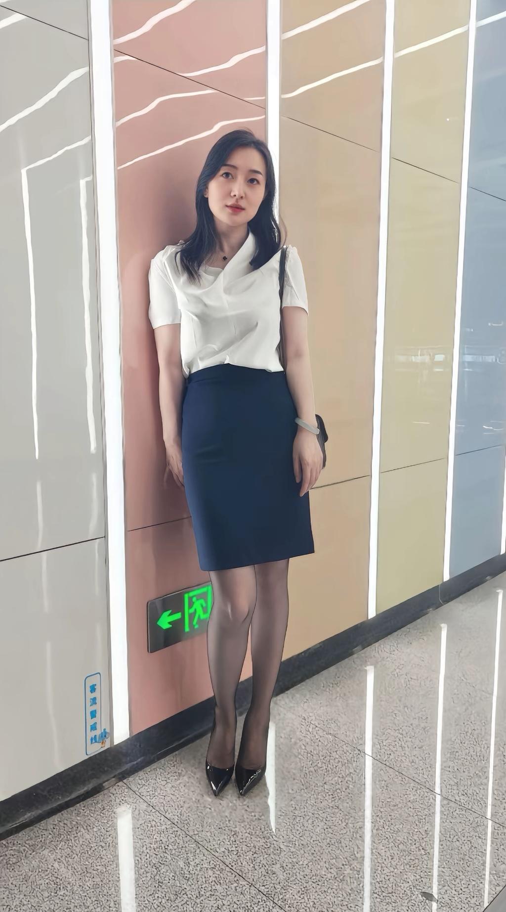 优雅气质穿搭,白色上衣+蓝色长裙,简约而不失时尚!