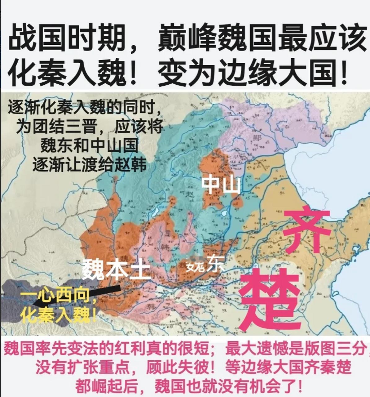 战国初期,魏文侯重用李悝、吴起变法图强,魏国一跃成为战国首霸。当时的魏国,坐拥中原腹地,放眼四顾,何处是发展方向?河内地区犹如今天的沿海经济特区,而关中则如同待开发的西部。魏国的选择,似乎顺理成章,却也埋下了日后衰落的伏笔。 公元前423年,魏文侯继位,开启魏国最强盛的时代。他任用李悝变法,实施“尽地力之教”,而河内地区正是这一政策的最佳试验田。 《史记·货殖列传》记载:“昔唐人都河东,殷人都河内,周人都河南。夫三河在天下之中,若鼎足,王者所更居也,建国各数百千岁。”河内土地肥沃,水利发达,农业产量高,且地处中原文明中心,开发成熟。 魏国选择重点经营河内,确实是明智之举。凭借河内的经济实力,魏国建立起当时最强的武装力量——魏武卒。《吴子·励士》记载魏军“大战七十六,全胜六十四”,其余不分胜负。 凭借这支精锐,魏国夺取了秦国河西之地,将秦军压制在洛水以西。此时的魏国,确实有傲视群雄的资本,正如文中所说:“处在四战之地又如何,看谁敢动手?!” 就在魏国全力经营东方之际,西边的秦国正陷入困顿。《史记·秦本纪》记载:“秦僻在雍州,不与中国诸侯之会盟,夷翟遇之。”东方的诸侯国视秦为蛮夷,不屑与之交往。 魏国对秦国的轻视,使其忽视了关中的战略价值。关中平原“被山带河,四塞以为固”,且土地肥沃,郑国渠修建后更是成为天府之国。但在当时,这些优势尚未充分显现。 魏国并非没有西进的机会。公元前419年,魏军在少梁筑城,经十年征战,完全占领河西地区。如果魏国此时乘胜追击,完全有可能灭秦。但魏国的战略重心始终在东方,仅满足于占领河西作为缓冲,而未能一鼓作气吞并整个关中。 这种选择在当时看来合情合理——谁会放弃已开发的中原,去全力经营被视为戎狄之地的关中呢? 历史的转折来得突然而又必然。 公元前354年,桂陵之战,魏军虽败但未伤元气;公元前341年,马陵之战,魏军主力覆没,太子被俘,庞涓自杀。两次大战,魏国军事力量遭受重创。 与此同时,西边的秦国迎来了商鞅。公元前359年,秦孝公任用商鞅变法,与魏国开发河内相比,晚了近半个世纪。但正是这迟来的变法,让秦国逐渐强大。 《史记·商君列传》记载:“行之十年,秦民大说,道不拾遗,山无盗贼,家给人足。”商鞅变法后的秦国,与昔日不可同日而语。 魏惠王晚年似乎意识到了战略失误,曾悔叹:“寡人恨不用公叔痤之言也”(《史记·商君列传》),公叔痤临死前曾建议他要么重用商鞅,要么杀掉,可惜为时已晚。 魏国失去关中,是战国格局的重大转折。分析其缘由,确有诸多必然因素。 魏国四战之地的地理位置,使其不得不四面防守,难以集中力量专攻一方。而河内地区的即时利益也确实诱人,让魏国难以抗拒。 加之各国对秦国的普遍轻视,使得关中地区的战略价值长期被低估。魏国大臣曾直言:“夫秦,虎狼之国也,有吞天下之心。夫秦,贪戾之国也,而无亲。”(《战国策·魏策三》) 然而,历史的走向也充满了偶然性。假如卫鞅没有去秦,假如桂陵、马陵之战魏国没有惨败,假如魏国能及时调整外交策略...历史或许会是另一番景象。 看着魏国由盛转衰的历史轨迹,不禁让人思考:假如你我身处当时的魏国朝堂,能否看出关中的价值?又会提出怎样的战略建议? 在评论区分享你的见解—— 你认为魏国最大的战略失误是什么? 如果魏国优先西进而非东扩,战国历史会如何改写?