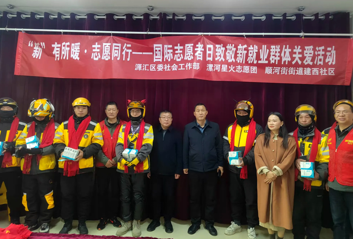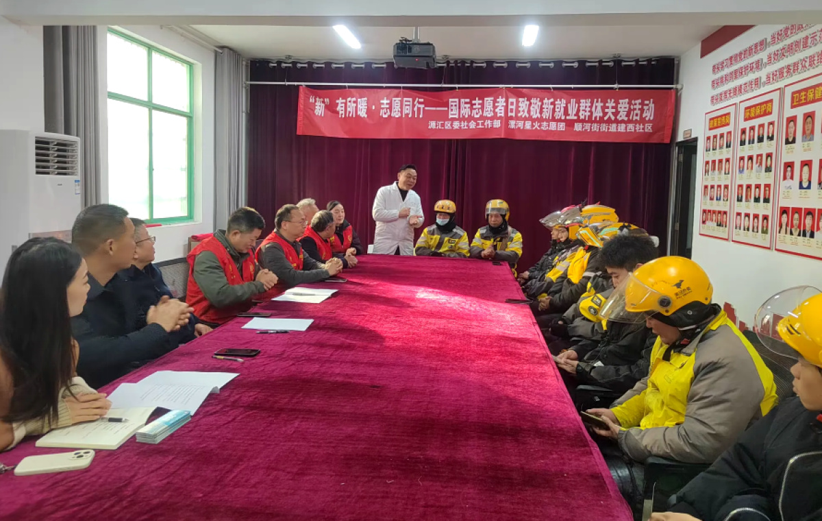在第40个国际志愿者日来临之际,为进一步凝聚新就业群体力量、传递社区温暖,12月5日,漯河市源汇区顺河街街道建西社区联合区委社会工作部、漯河星火志愿团以“‘新’有所暖·志愿同行”为主题,开展新就业群体关爱活动,用实际行动致敬奔波在一线的新就业群体志愿者,推动“红管家”志愿服务体系与新就业群体服务深度融合。