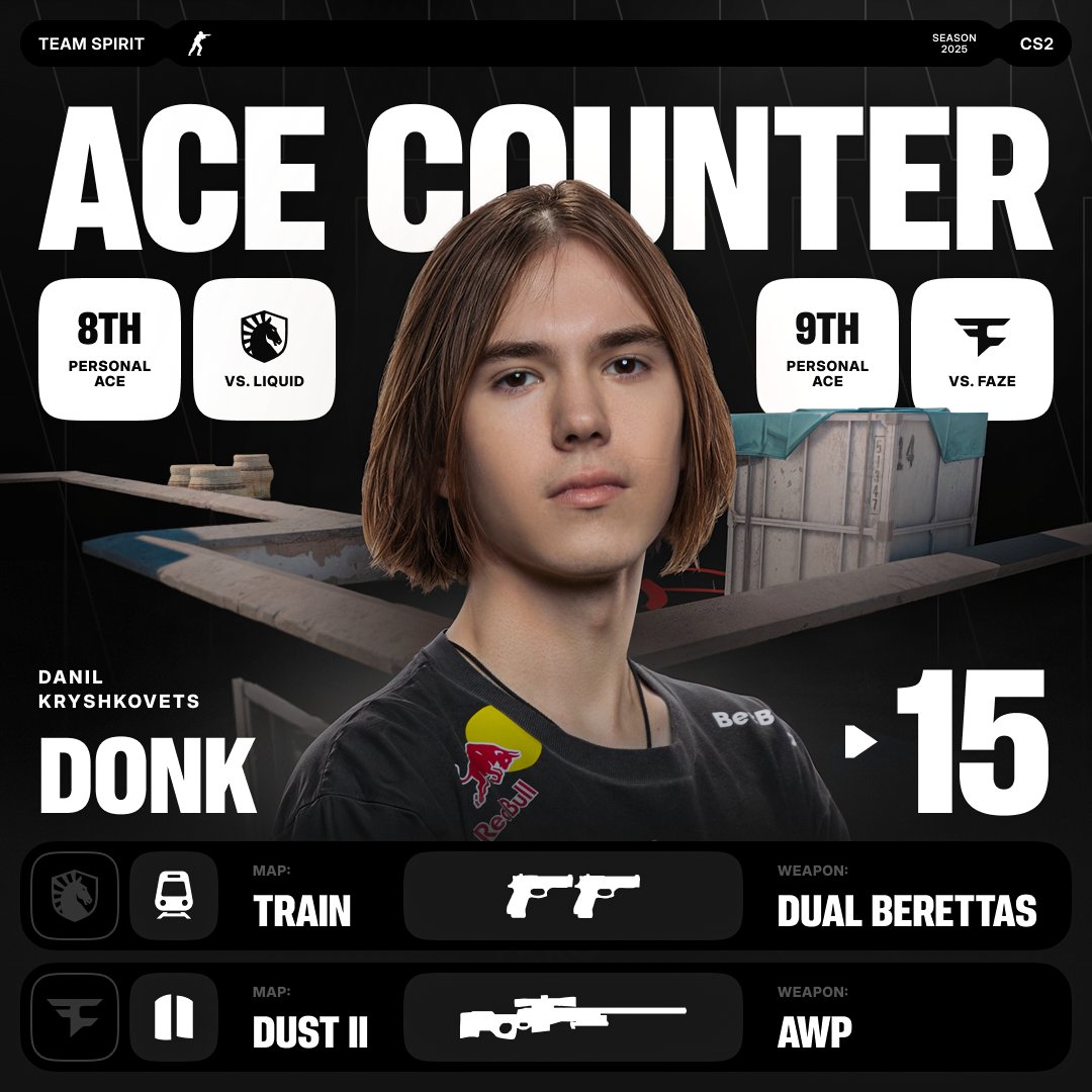 Spirit官方发布:ACE+2,donk在MAJOR的五杀次数来到9次