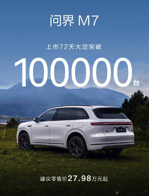 问界全新问界m7 9月23日上市,72 天的时间,全新问界M7大定破10万台了!作为一个为问界M8 车主,在已经体验过问界目前最新的M7/8/9三款车型以后,可以负责任地告诉大家:全新问界M7是这三台车里面驾驶感受最符合年轻人喜好的!当然这也与它更短小的车身和更灵活的配置有关。另外,这个大定数字也说明,能被十万用户锁定,必然藏着越级的产品力:灵活储物、舒适座椅、智能交互。另外,到店体验过后,问界大饭店、夜间服务带来的情绪价值,用钱也买不到! 消费者还是很精明的,按照这热度,12月不知道问界最终的交付能冲到什么数字呢?