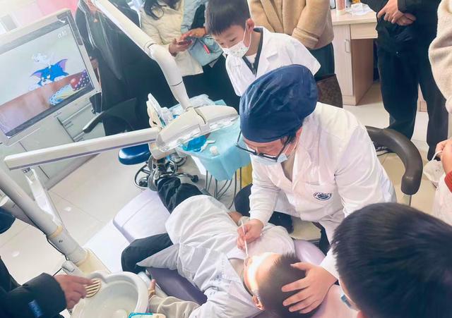 随后,孩子们在医护人员和家长志愿者的引导下,分组进行了简单的口腔检查。这一环节不仅让孩子们亲身体验了看牙医的过程,还培养了他们正确的口腔卫生习惯。