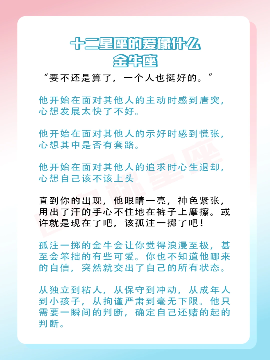 『白桃星座』金牛座在爱情里不疯魔,不成活