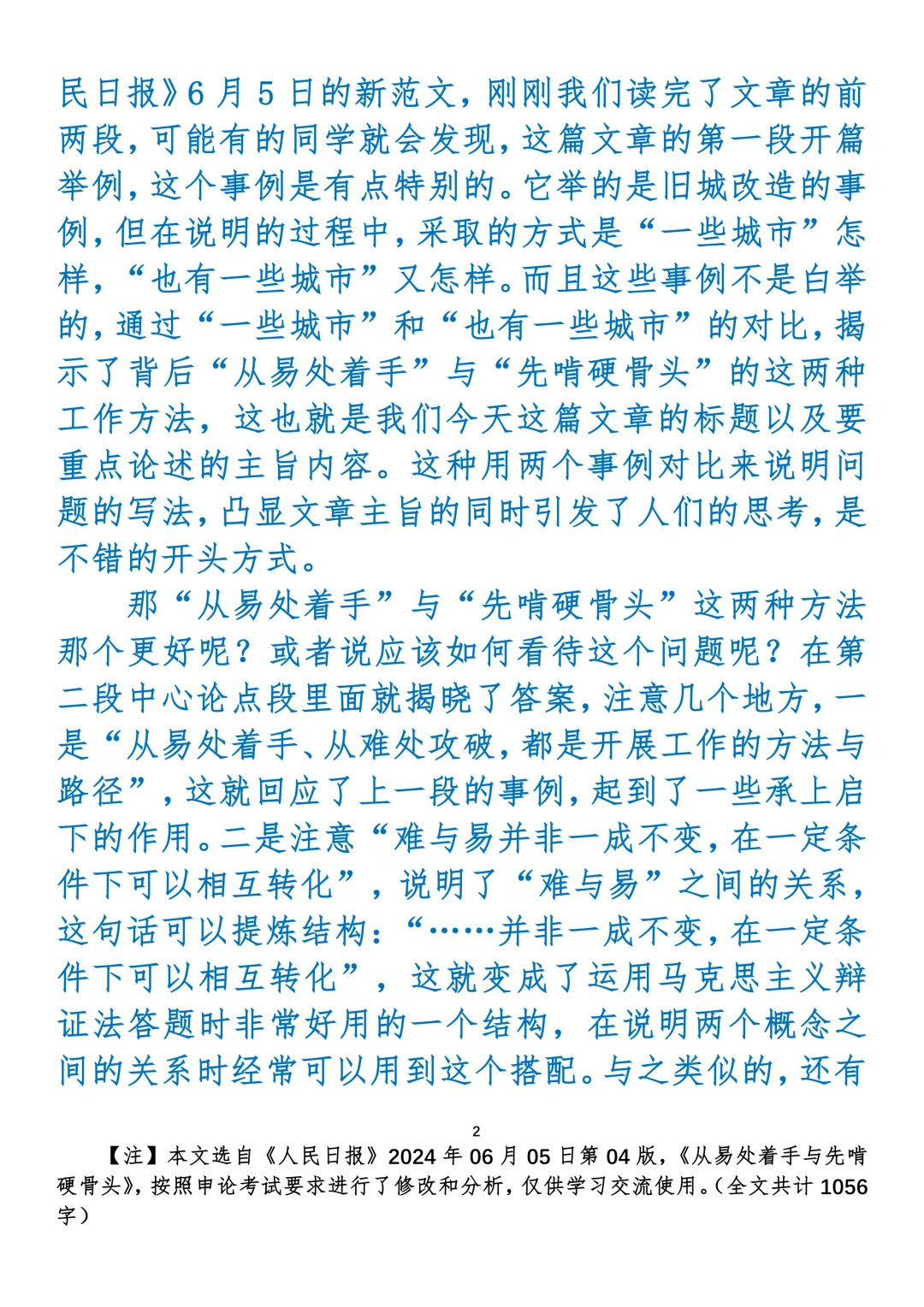 申论范文:从易处着手与先啃硬骨头