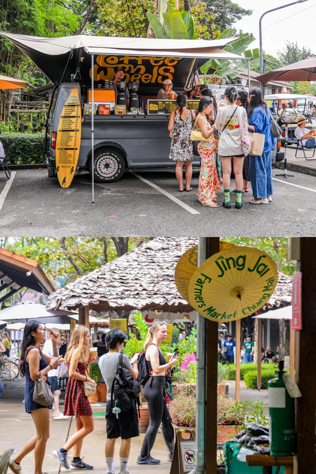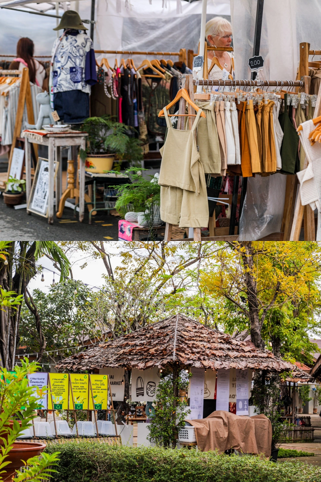 JJ Market(Jing Jia Market)只有周末开摊,一定要早去,不然好看的款式容易被抢光。必逛清单:① 草编包,色彩鲜艳好看,② 手工饰品、编织帽子、冰箱贴,每款都独具匠心;③ 泰式烤五花肉、烤香蕉、天然植物饮料,逛累了随时补充能量。市集里还有小众画廊、咖啡厅,逛到傍晚都不腻~