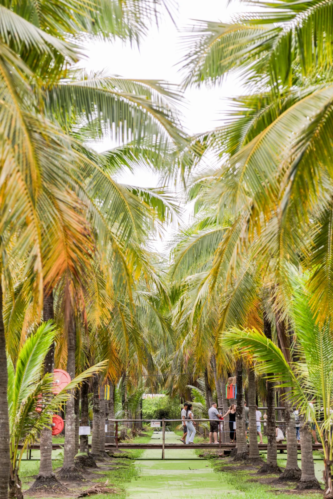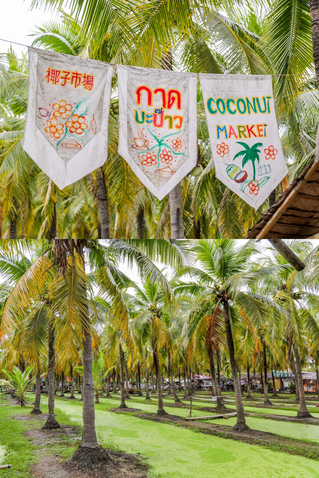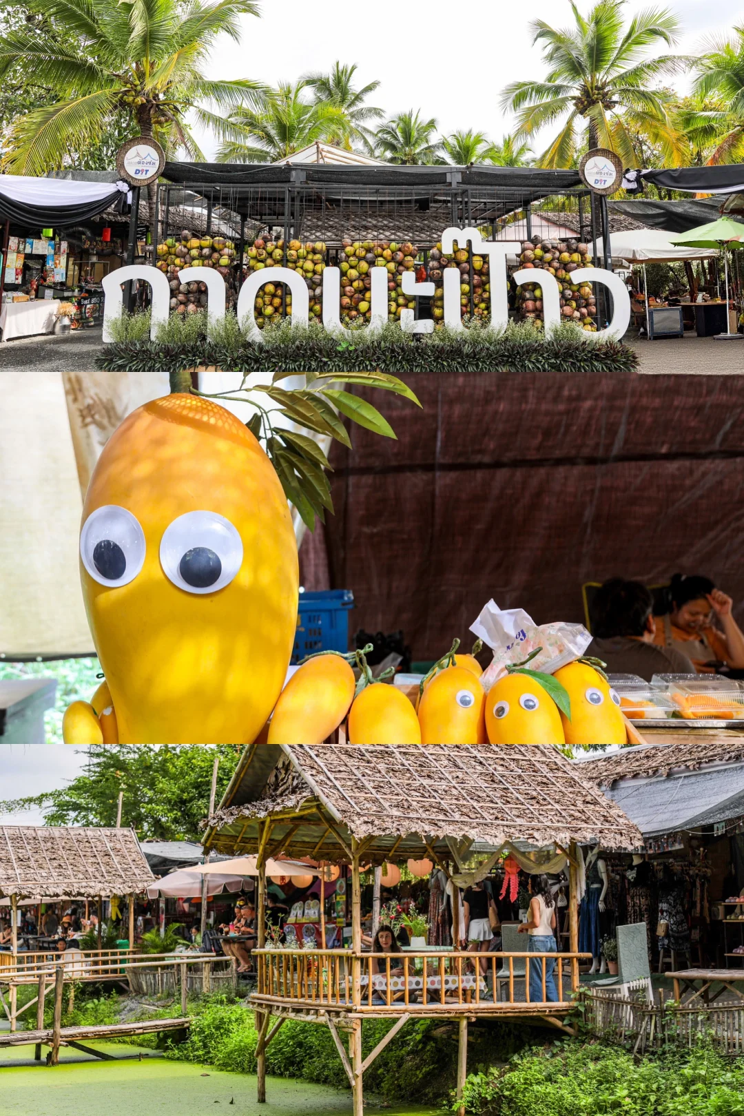 高大的椰树排列整齐,阳光透过树叶洒下斑驳光影,木桥、水道点缀其间,随便一拍都是度假感十足的写真。烤紫薯、椰子冻、凉拌青木瓜沙拉可以试试,50泰铢左右就能吃到地道风味。找个椰林凉亭坐下,边吃边拍,松弛感直接拿捏~