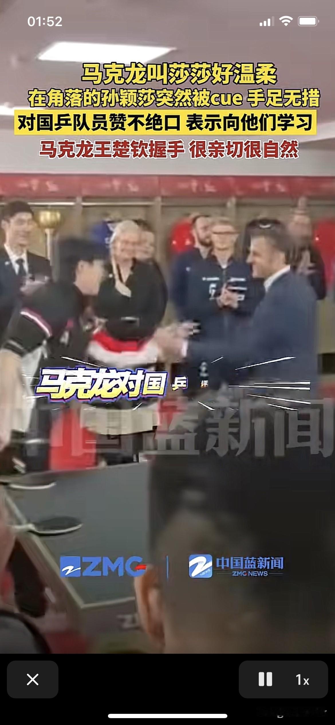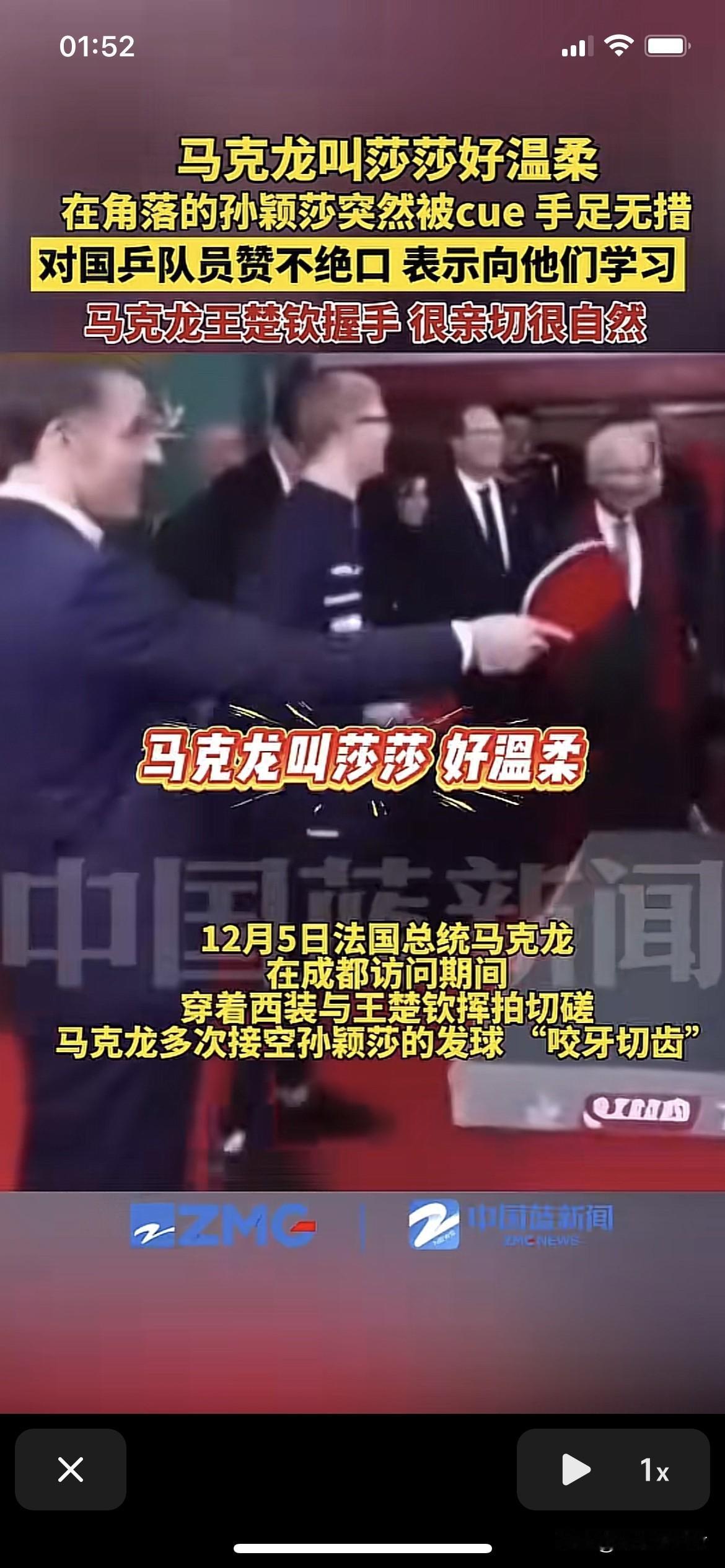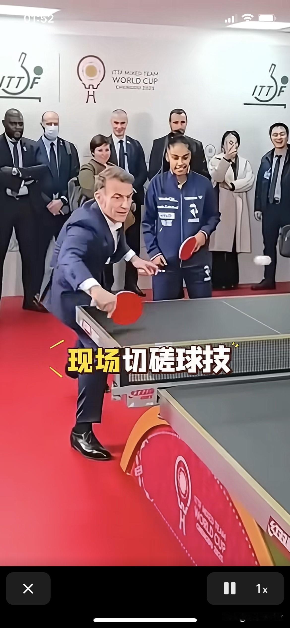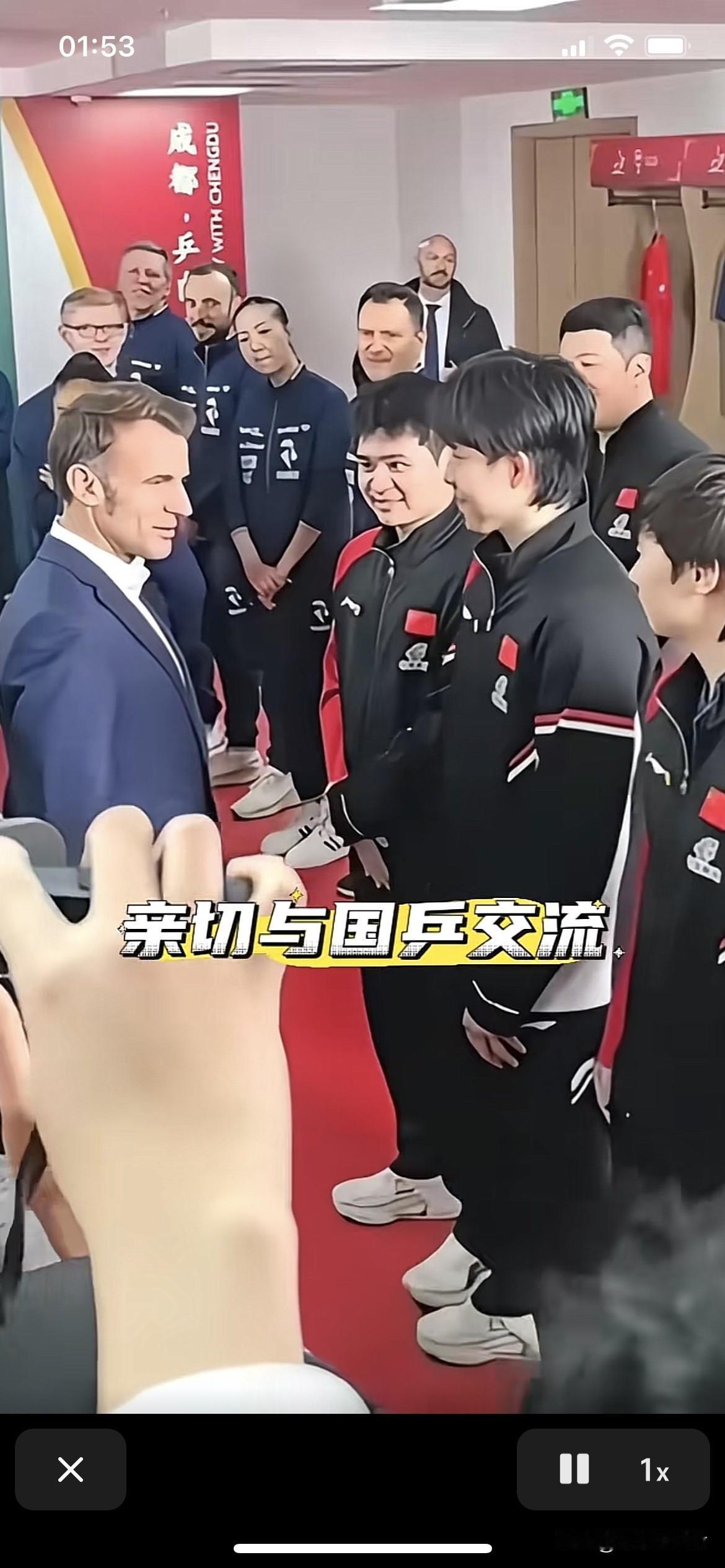 马克龙和小布布双打。国乒队员。 马克龙用中文叫孙颖莎为莎莎!莎莎! 气氛真的非常好。非常和谐。中国和法国运动员一起互动。 莎莎这个优秀的孩子,真的让全世界人都知道了自己,在哪里都会光芒四射,法国总统钦点:Shasha,为你骄傲为你自豪!