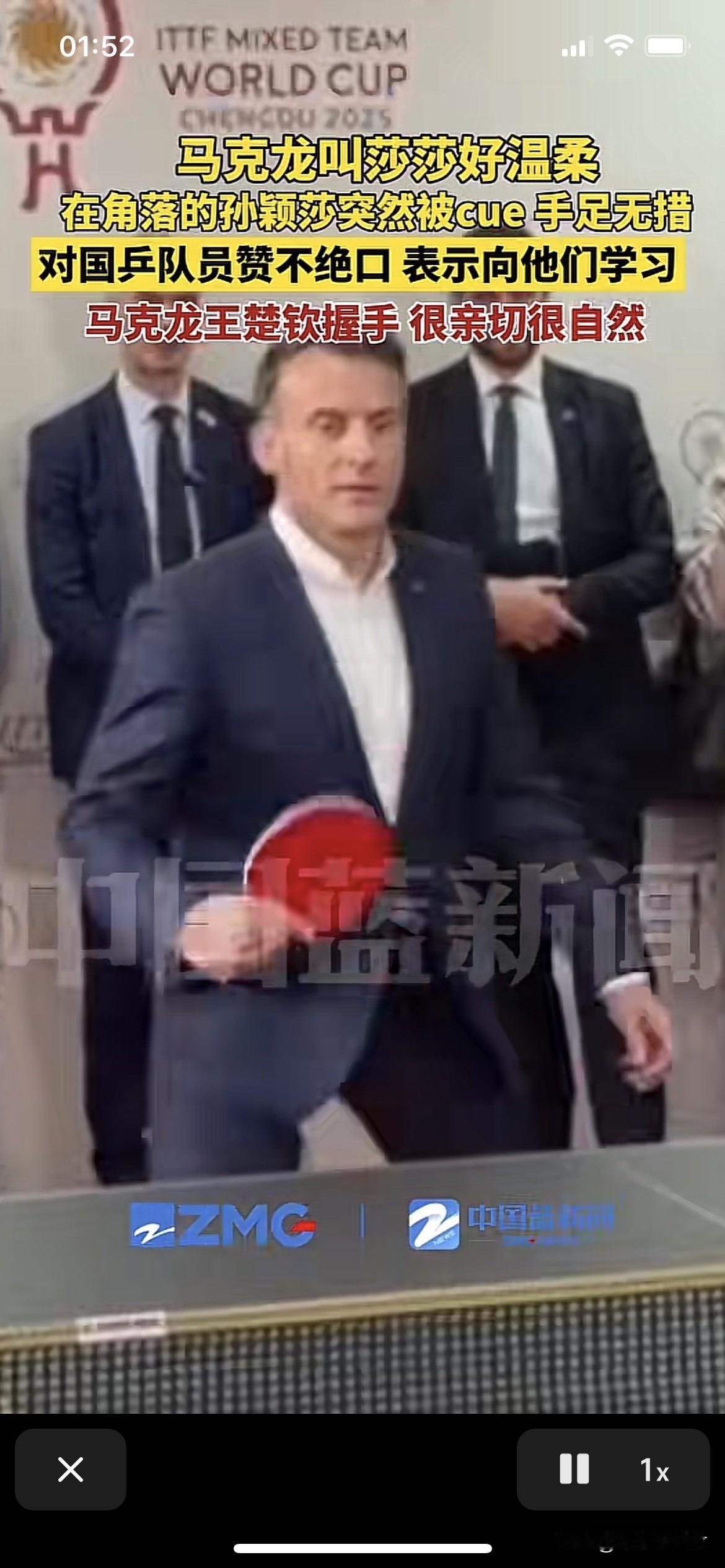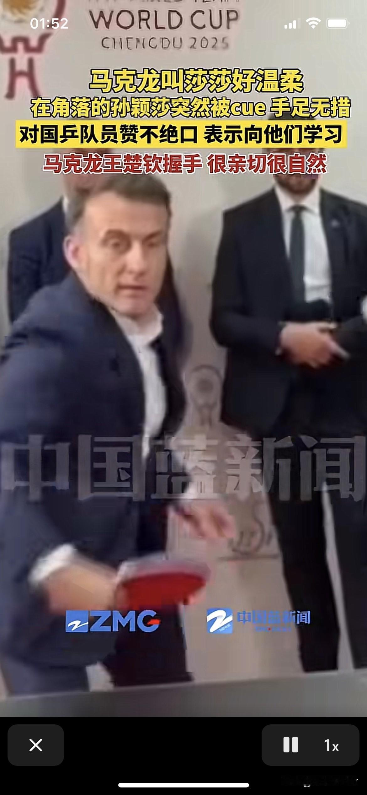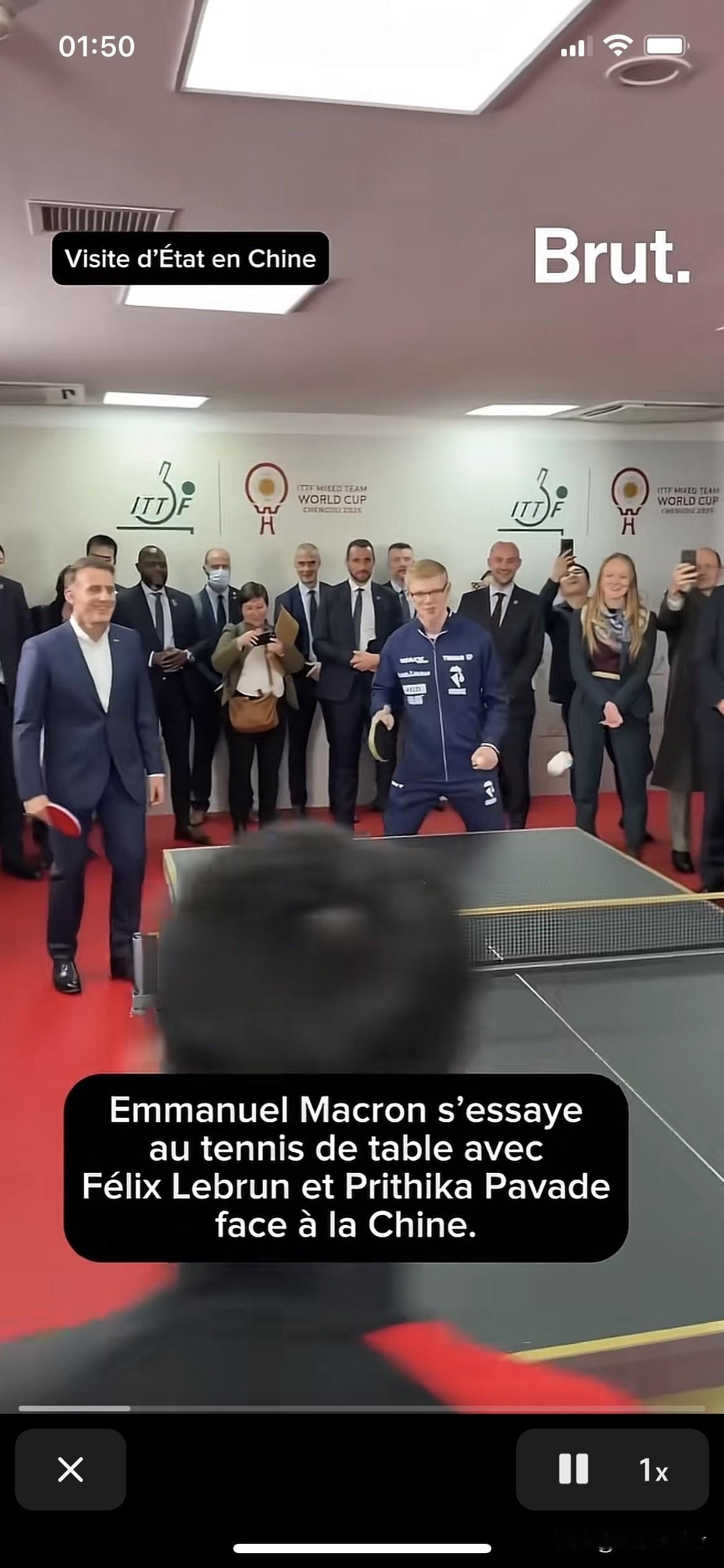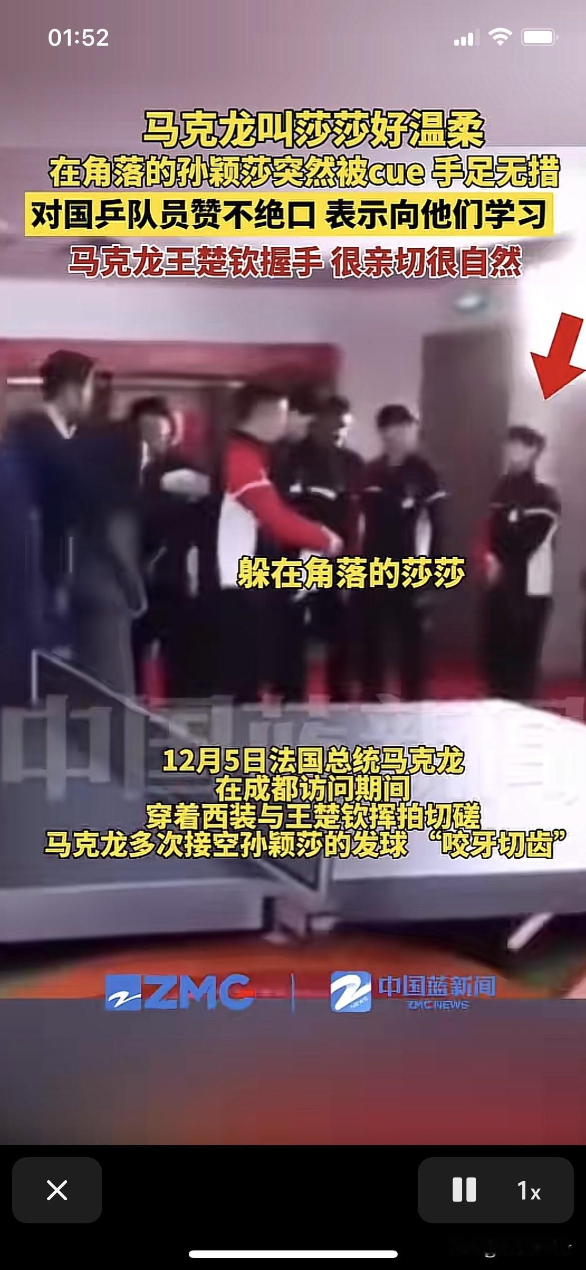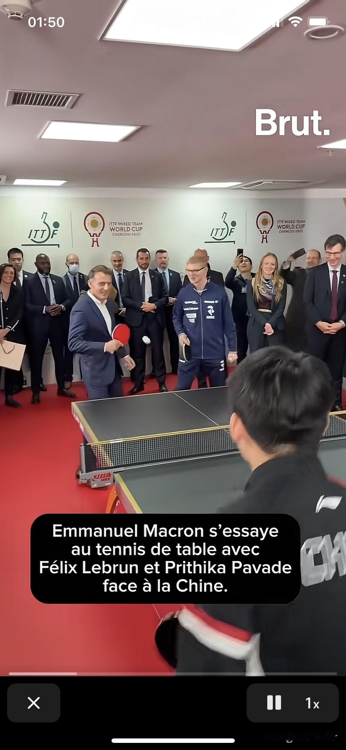 马克龙和小布布双打。国乒队员。 马克龙用中文叫孙颖莎为莎莎!莎莎! 气氛真的非常好。非常和谐。中国和法国运动员一起互动。 莎莎这个优秀的孩子,真的让全世界人都知道了自己,在哪里都会光芒四射,法国总统钦点:Shasha,为你骄傲为你自豪!