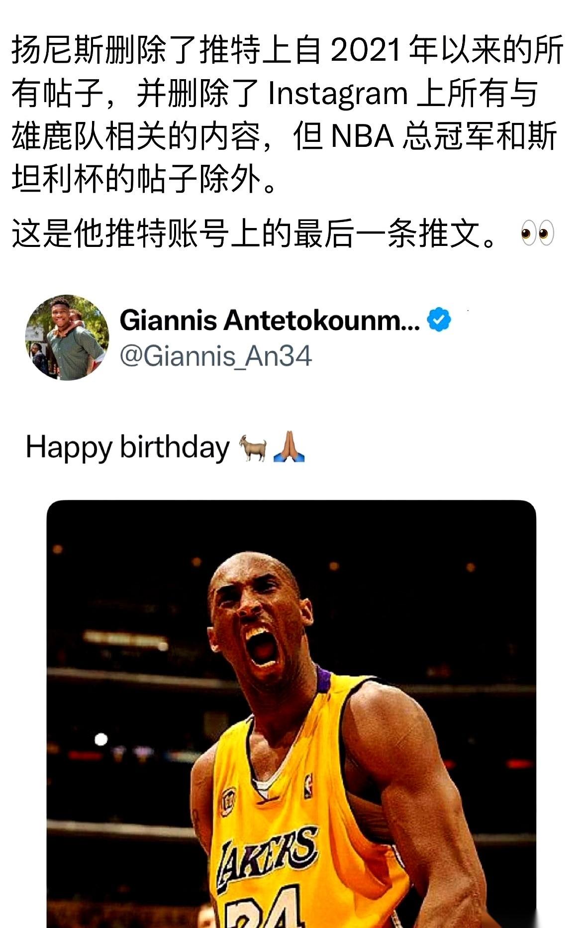 一夜之间,社交媒体全删了。 所有跟雄鹿队有关的内容,一张不留,删得干干净净。 就只剩下那个总冠军奖杯的照片,孤零零地挂在那儿,像个句号,也像个惊叹号。 这哥们儿想干嘛? 这不就是明牌了吗。 潜台词清清楚楚地写着:我答应你们的,那个叫“冠军”的东西,我拿命给你们拼下来了。我对得起这座城市,对得起你们所有人。 我们,两不相欠了。 然后呢?然后就是“我”自己的事了。 这动作做得太绝了,一点缓冲都没有,直接就是一记重拳打在所有人的脸上。什么叫职业球员?这就是。情感是情感,生意是生意。 再联想一下那个传闻,说他最想去的地方是湖人。 你把这两件事儿放一块儿咂摸咂摸,是不是味儿一下就全对了? 都说小球市留不住人心,其实哪是留不住人心,是留不住那颗已经尝过巅峰滋味,还想去更大世界看看的野心。 他已经给了密尔沃基一个最圆满的交代。 现在,轮到他给自己一个交代了。 这休赛期,有大戏看了。