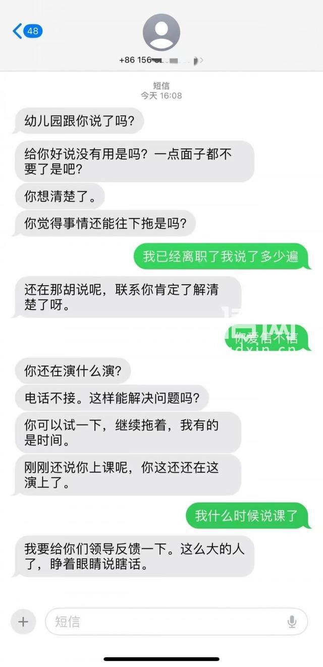张女士告诉信号新闻,事发后她曾尝试跟催收人员沟通,也表达了月底前凑钱还款的意愿,但对方依旧不依不饶。“他们反复强调‘当天就要结案’‘今天就在核查户籍和单位信息’,还说要找幼儿园的领导反馈、给幼儿园邮寄材料。我实在不好继续工作,就只能辞职了。”
