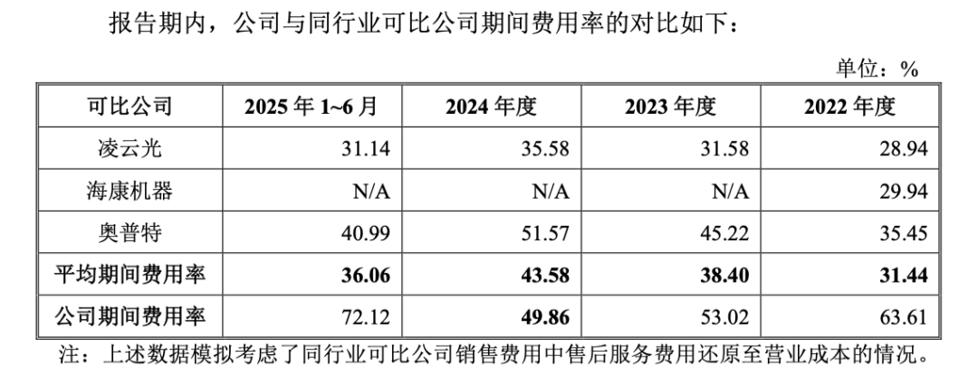 但同期易思维的费用金额(销售费用、管理费用、研发费用和财务费用)占比也明显高于同行业可比公司,高费用占比压缩了易思维的利润空间。