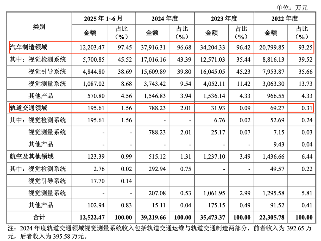 其中汽车制造领域在2022年至2025年上半年(以下简称“报告期内”)的营收占比一直超过9成,分别为93.25%、96.42%、96.68%及97.45%。