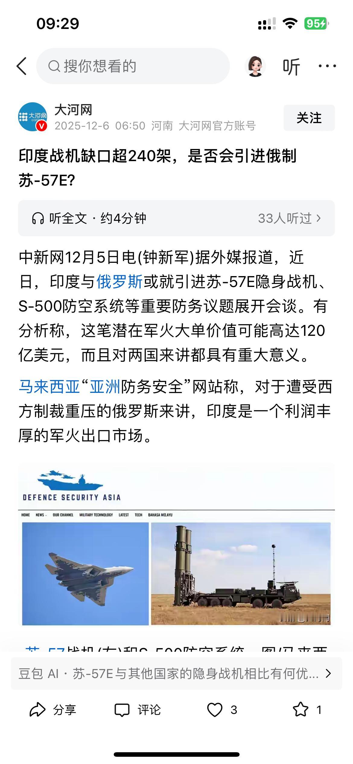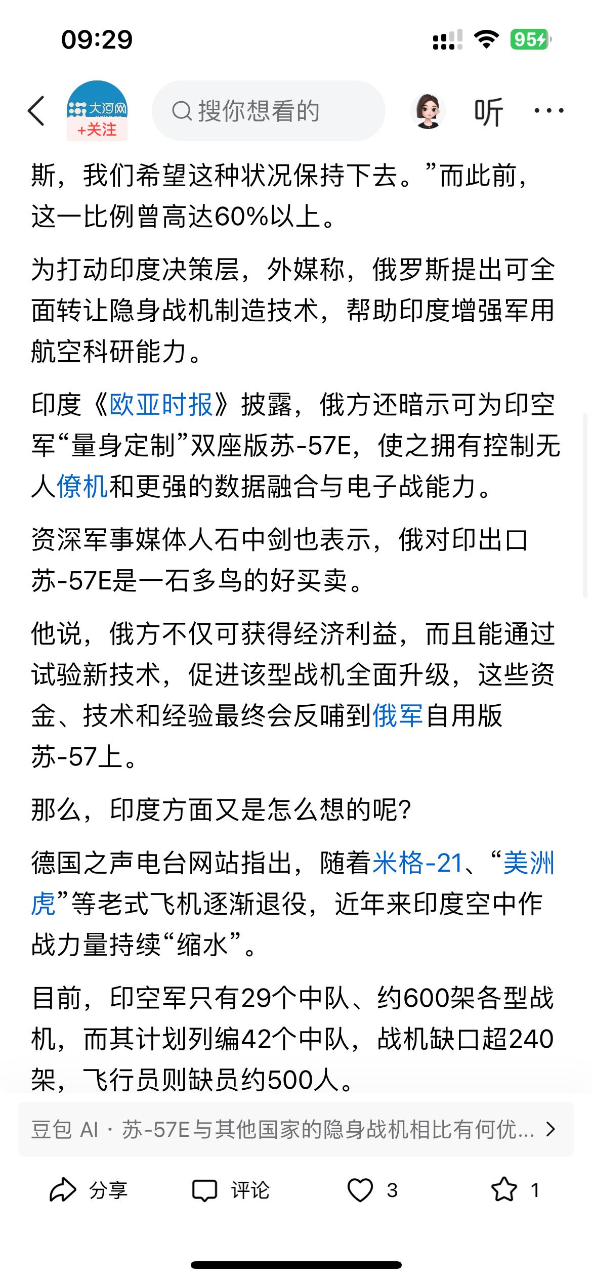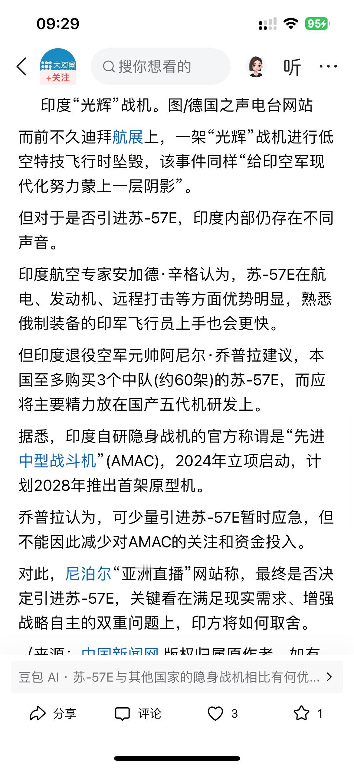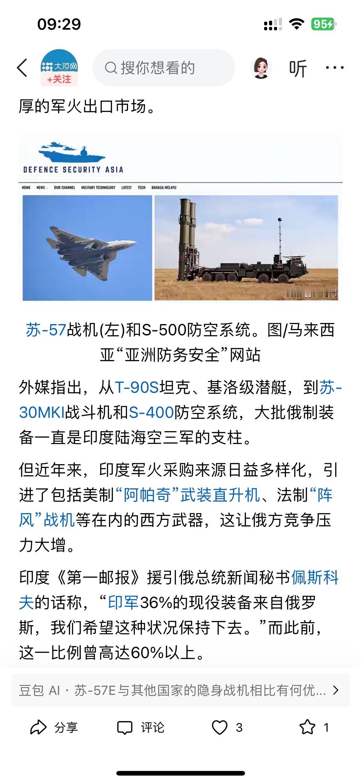 印度是否会引进俄制苏-57E第五代隐身战斗机,答案是肯定的。 印度也只有从俄罗斯引进第五代机,其他别无他途!毕竟印度的俄制战机从米格-29、到苏-30,再到S-400防空系统,印度是俄制军火的购买大户。 对于美国或其他国家的第五代战机是不可能卖给他的,而印度的“光辉”战机项目从立项到现在三四十年了,服役了10架,已经摔了两架,引进俄罗斯的的成熟的第五代机先进项目,印度学习学习俄罗斯的先进技术!