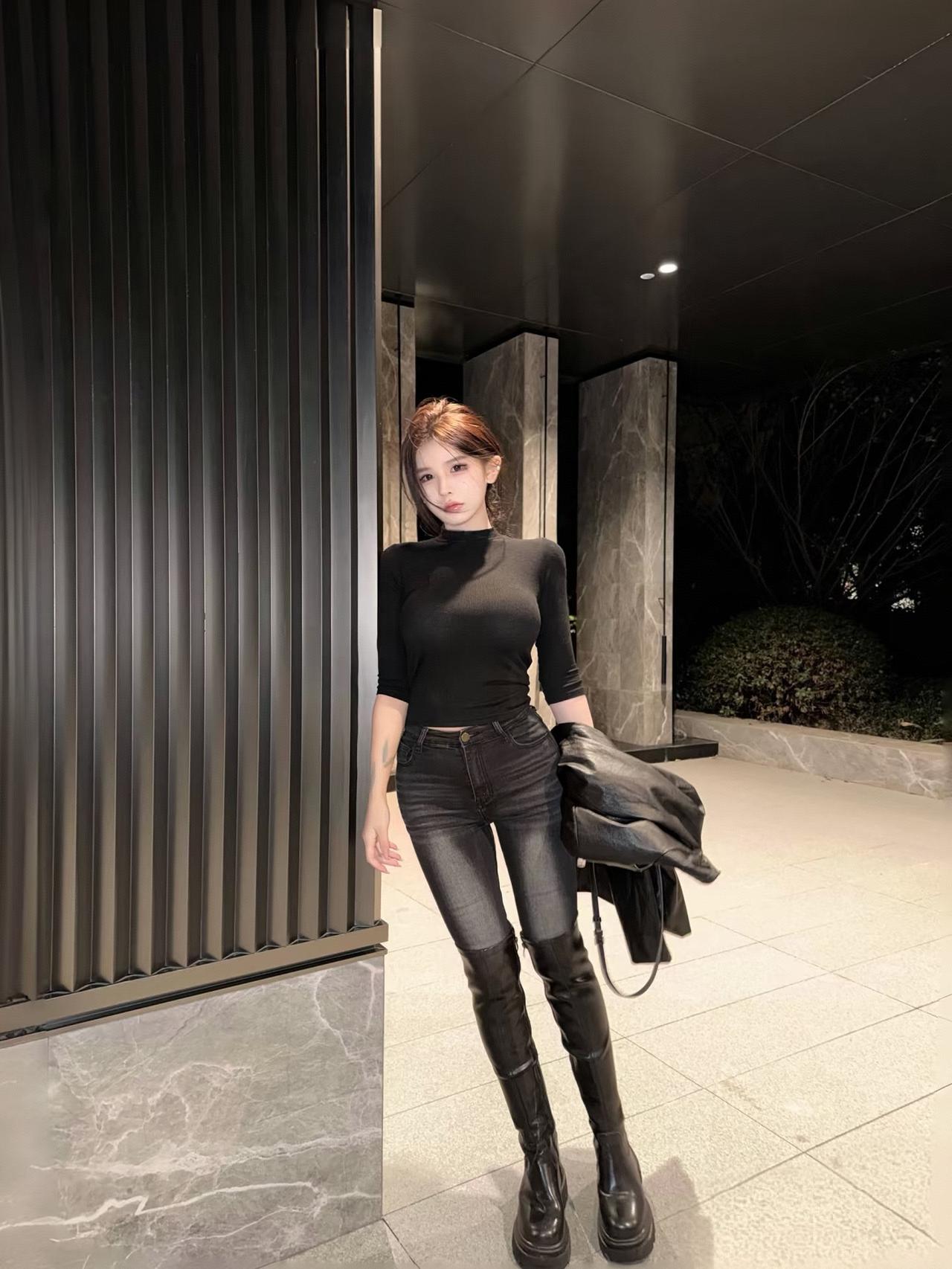 白衣红裙立街旁,夜色如花拂鬓香。莫道独行无胜景,一身明媚压星光。